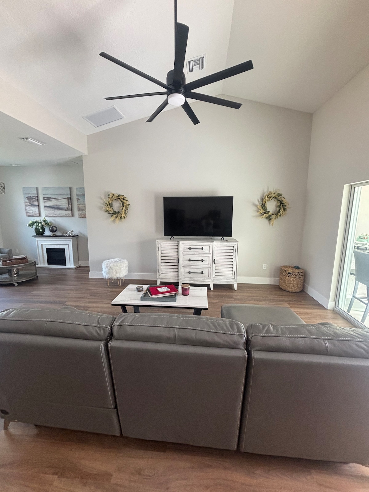 Cozy home is 3 miles from Historic Downtown Ocala. Our home has 3 bedrooms/2 bathrooms, 4th bedroom is an open space office and Game room with queen sofa bed. -Exterior Kitchen -*1 KING BED -*1 QUEEN BEDS -*2 SOFA BED -*1 QUEEN AIR MATTRESS (please request when more than 10 guests) Plenty of windows to enjoy the sunshine state. We have a spacious living room with a large smart tv. ) Complimentary coffee, shampoo, conditioner and detergent is also available.