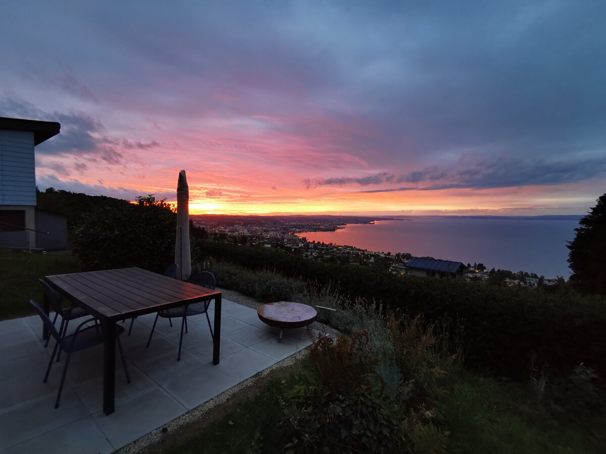 Mənzilimiz göldən uzaqda möhtəşəm mövqeyi ilə diqqəti cəlb edir. Yüksək keyfiyyətli və rahat mebellə təchiz edilmiş, gözəl bağa baxan sakit bir yerdir. Cəmi 5 dəqiqə sonra gölə gedə və birbaşa çimərlikdə üzməyə gedə bilərsiniz. Gözəl köhnə Überlinqen şəhərinə də uzaq deyil. Təxminən 20 dəqiqəyə piyada gedin. Bir avtobus qapınızın ağzına gedir və sakit yaşayış küçəsində pulsuz park edə bilərsiniz.