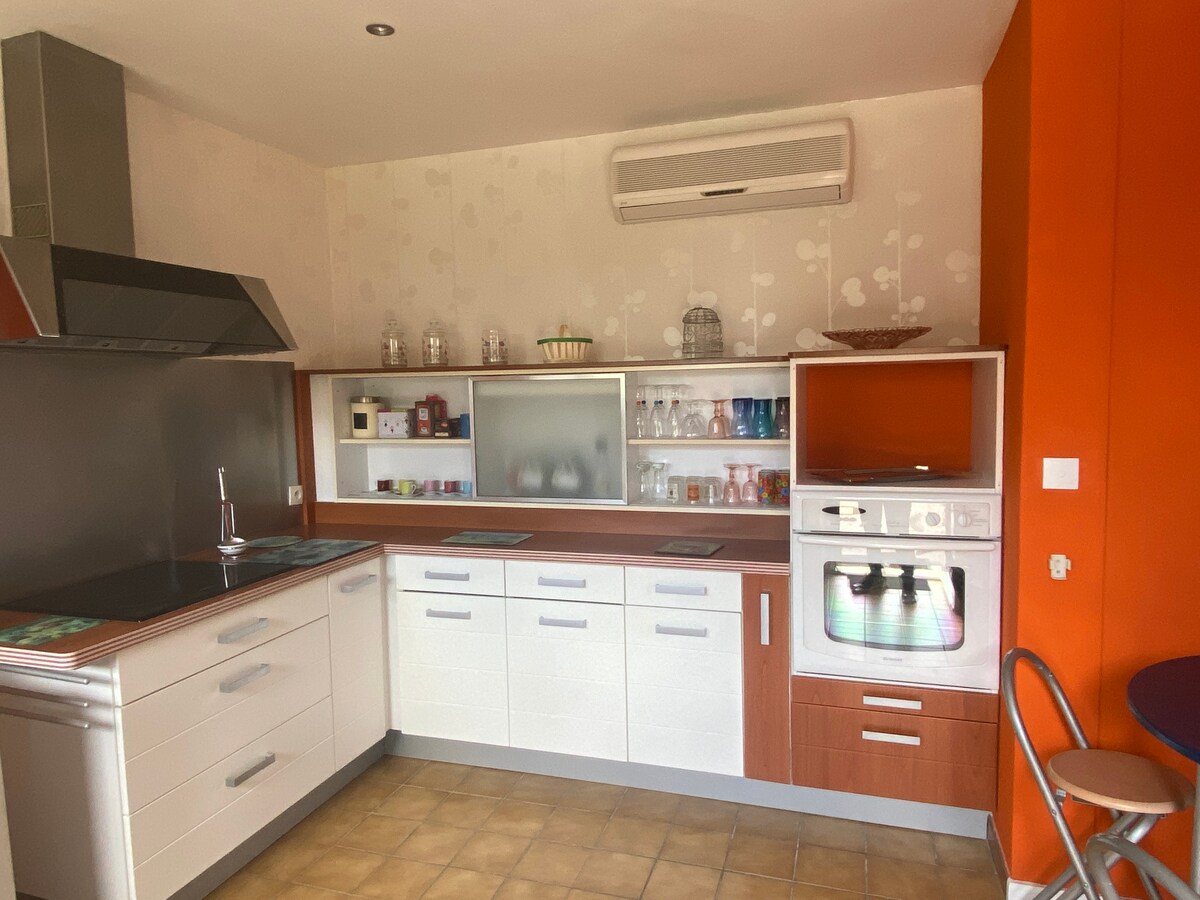 Heated swimming pool (from 24 to 27° in April, then 28° from May onwards). JACUZZI on request optional 45€ / day in April and May, but included from June to September. Annex of my house, your accommodation is independent and composed of a main room, a bathroom / WC and then a separate bedroom; a covered awning/patio with BBQ, fireplace and Jacuzzi. Enclosed grounds. Max 6 pers. Arrival 4 pm / Depart. 11am Please no parties or significant noise pollution We look forward to welcoming you!