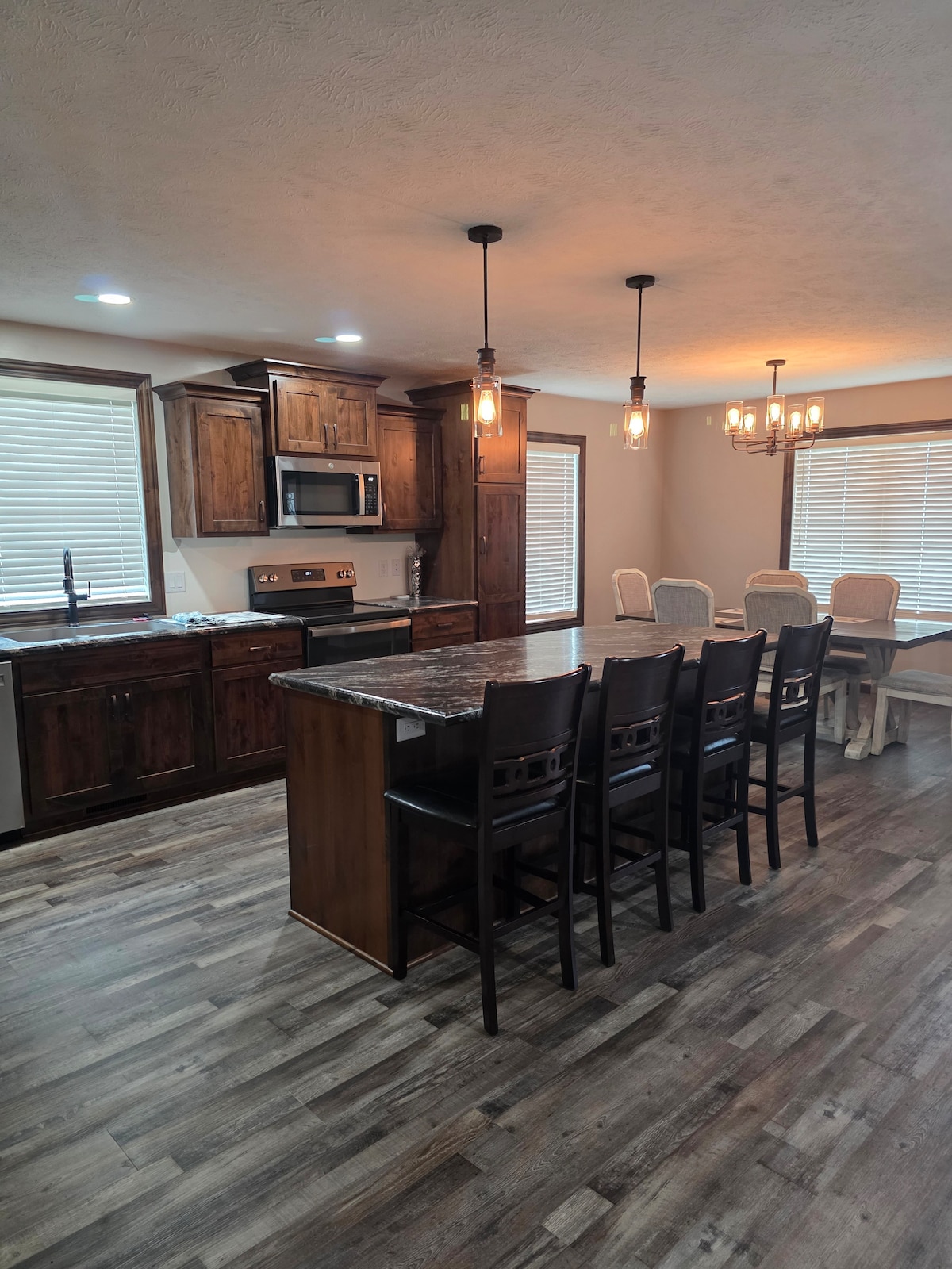 Əsas səviyyəli mənzil. Mətbəx bütün yemək bişirmə ehtiyacları üçün tam təchiz edilib, qranit dəzgahlar və paslanmayan polad aparatları. Unikal yemək seçimləri və əyləncə məkanları, sadəcə qısa məsafədə. Bdrms-də hipoallergik xalçaçılıq, taxta görünüşlü lüks vinil taxta döşəmə mənzilin qalan hissəsi və yaşayış/yemək sahəsində və bütün yataq otaqlarında 10 ft-dən çox tavan/ventilyator. Döşəmənin planını açın. 43" Roku TV w/ WiFi qonaqlar üçün təchiz edilib. 2 mənzil üçün 1 paket n oyunu keçirin ki, bunun üçün mesaj sorğusu göndərilsin. 1-ci sorğu ondan istifadə edə bilər