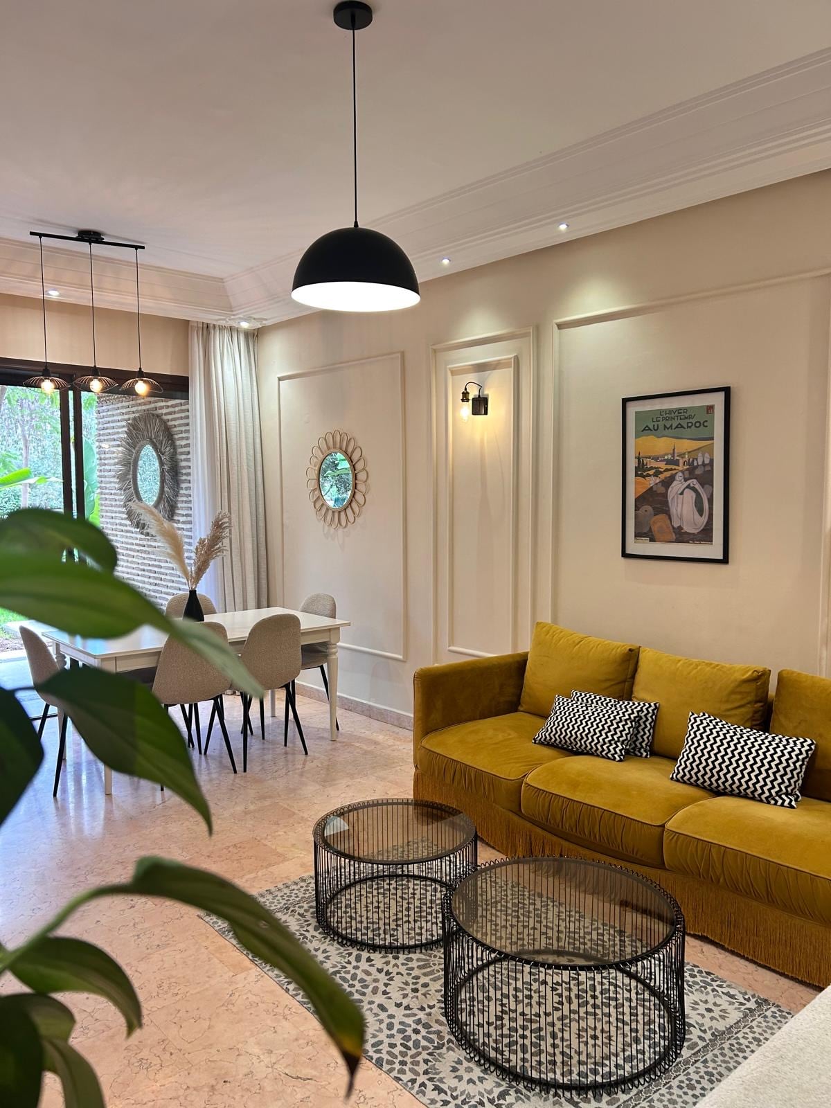 Niché au cœur du prestigieux domaine touristique Marrakech Golf City, découvrez ce luxueux appartement offrant une vue exceptionnelle sur le golf, la piscine et sur les majestueuses montagnes de l'Atlas. L'appartement a été décoré avec amour avec un style moderne, bohème et beldi-chic. Il est entièrement équipé et offre des prestations haut de gamme La résidence est orientée vers les montagnes de l'atlas, elle est très prisé de part son cadre calme et sécurisé et de sa proximité du centre ville