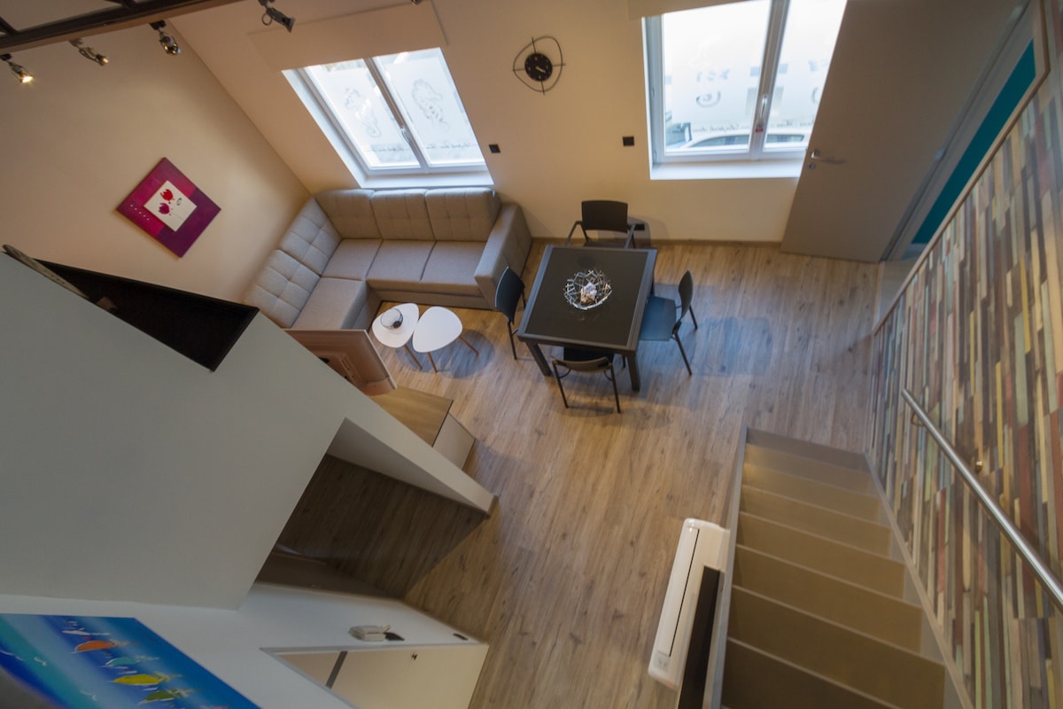 Marselin mərkəzindəki mənzilimiz həyatın müasir komfortları ilə tarixi binanın füsunkarlığını birləşdirir. Şüalı tavanlar və açıq daş divarlar müasir mətbəxi, dəbdəbəli hamam otağını və 100 kv metrdən çox yaşayış sahəsini tamamlayır. Balkonda kifayət qədər oturma yeri və sarmaşıq sahəsi var. Evdən uzaqda əsl ev olması üçün təchiz olunub. Mövqe supermarketlər, restoranlar və barların hamısı qısa məsafədə yerləşir.