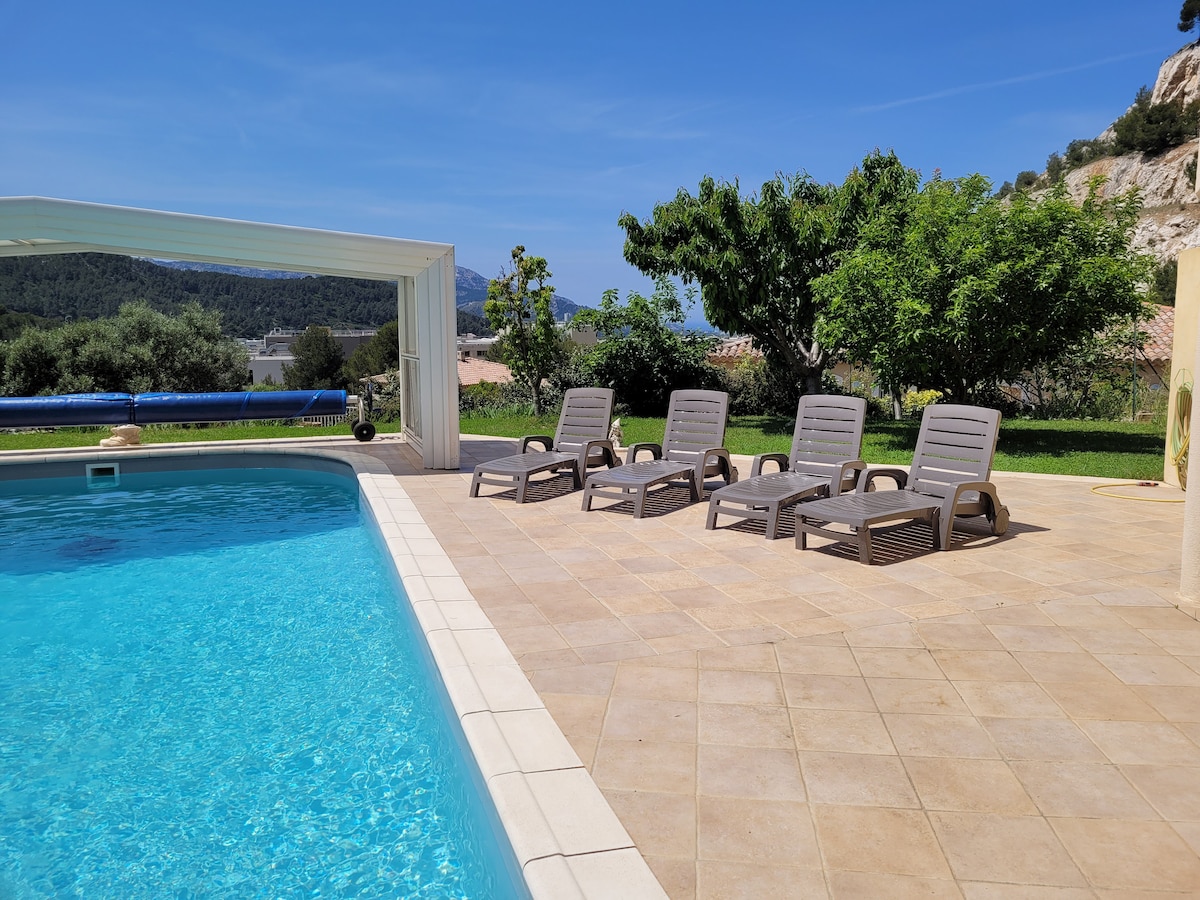 35 m2 müstəqil T2, müstəsna təpə mənzərəli xüsusi villada yerləşir. Calanques Sormiou, Morgiou və Sugiton, eləcə də Escale Borély & Pointe Rouge çimərliklərinə yaxındır. Kassisə gedən yolun aşağısında. Təhlükəsiz xüsusi parkinq. Hovuz. Bron etməzdən əvvəl studiyanın saxlanılması üçün ev qaydalarını oxuyun. Həqiqətən, 25 € məbləğində "təmizlik" haqqı yalnız Airbnb-nin tətbiq etdiyi xüsusi COVID təmizlik prosedurunu əhatə edir.