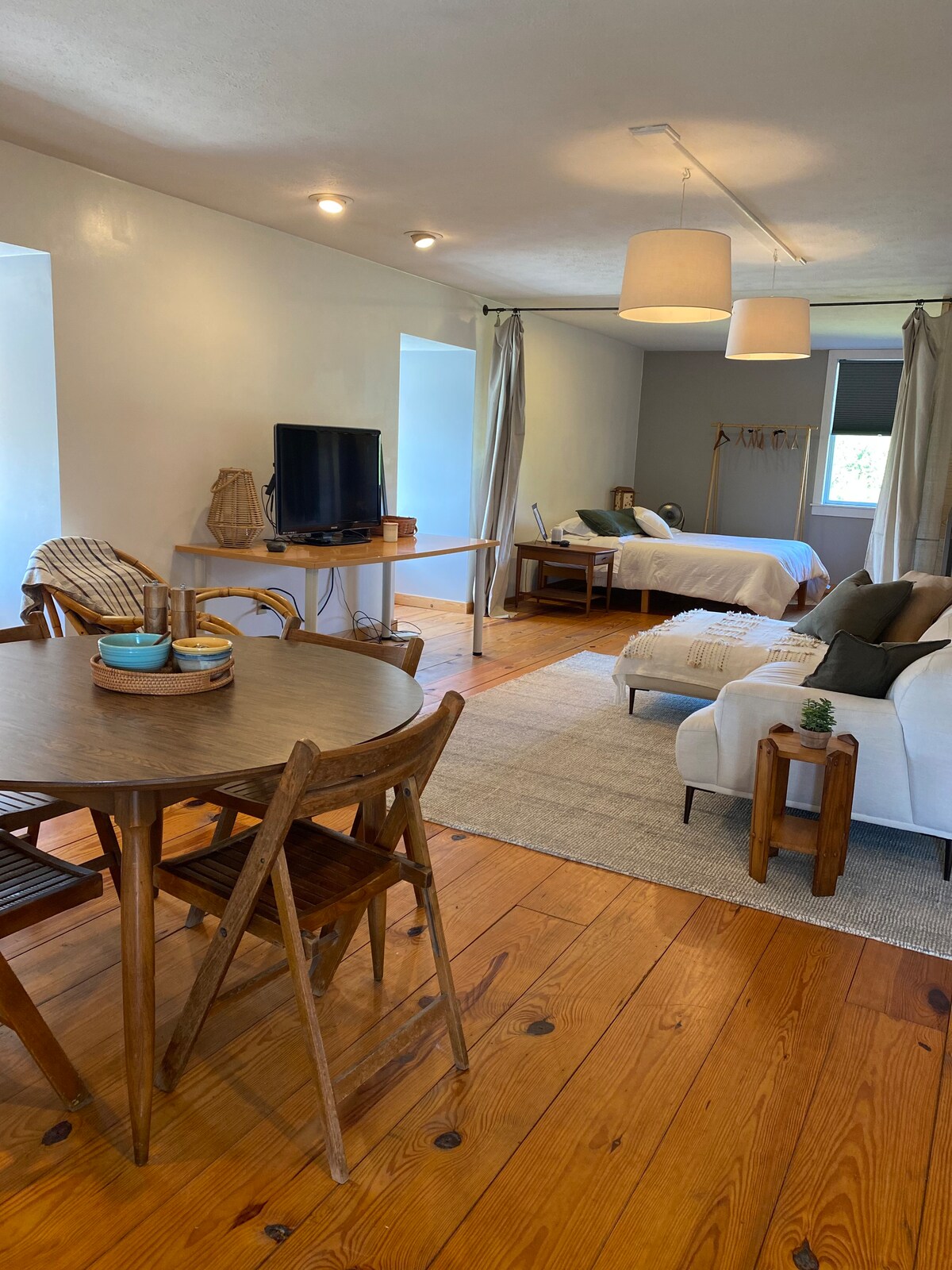 A small landing pad on the farm for those with a destination. Our Japandi style apartment UPSTAIRS on our farm is the perfect place to rest your head. It has just enough for you to stop and grab some rest and relaxation. A quiet setting here on our small, less than two acre farm, close to Amish, Notre Dame, small town charm and country life. A great place to stop and drop! This apartment is UPSTAIRS in the loft of our small barn. Please don’t book if you can’t use steps.