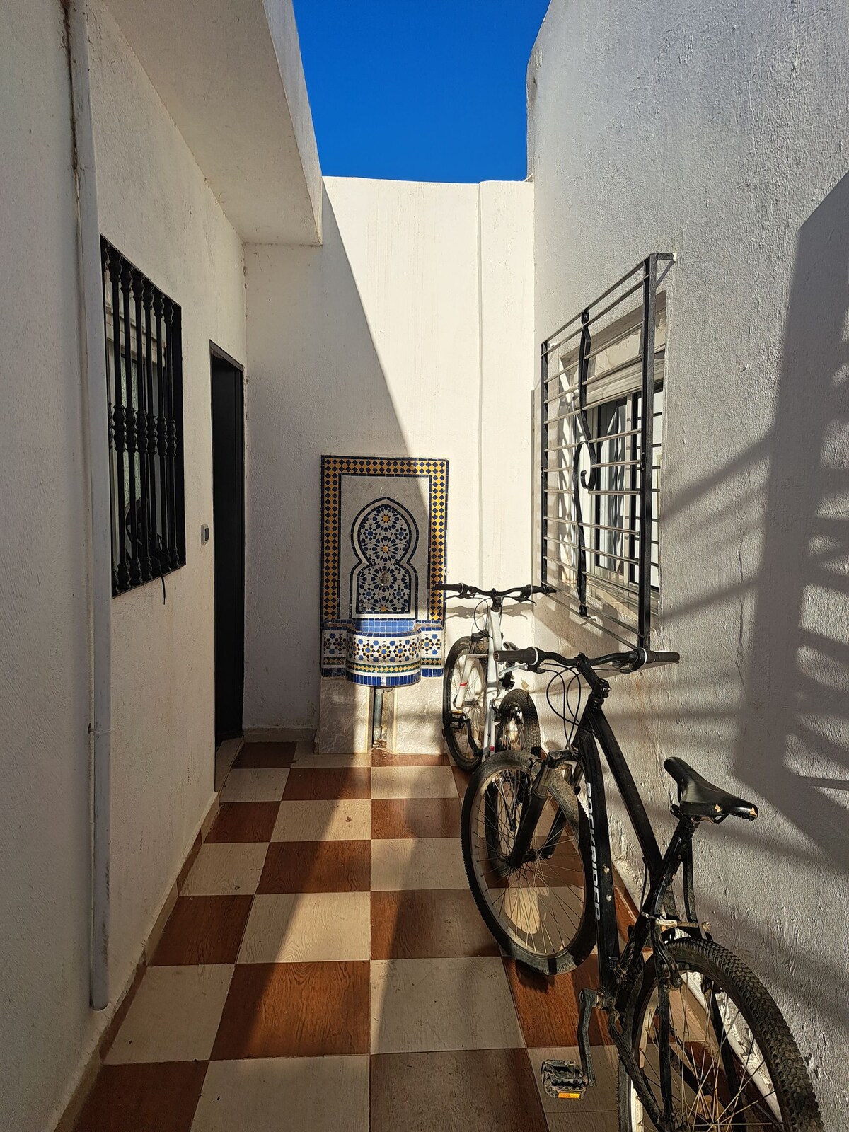 Medinaya əsas giriş qapılarından birinin yanında gözəl Riad. Böyük bir terrası olan böyük bir ev. Küçə səviyyəsində giriş, mətbəx, qonaq otağı , yemək otağı və qonaq otağı. Birinci mərtəbədə ikinəfərlik çarpayı, tualet və üçnəfərlik otaq, ikinəfərlik çarpayı və birnəfərlik çarpayı. İkinci mərtəbədə medinaya və dağlara baxan böyük terras. Mədinə qapısının yanında pulsuz mühafizə olunan parkinq. İstənilən vaxt sizinlə görüşə bilsək, istənilən vaxt sizinlə görüşəcəyik, bizdən soruşacağıq
