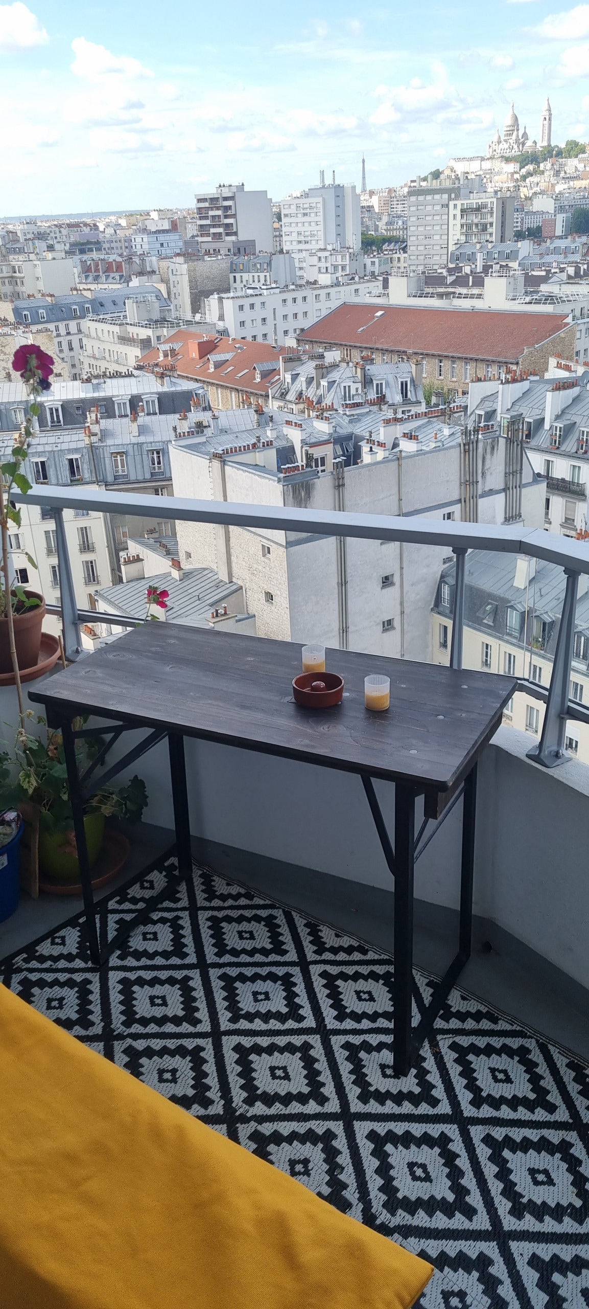 Kiçik mənzil işıqla çimir. Rahat və ilıq. Lift/lifti olan 7-ci (üst) mərtəbədə. Cənubla üz-üzə. Parisə baxan möhtəşəm mənzərəsi olan yaraşıqlı terras yemək və istirahət üçün idealdır. Şəhərin gözəl abidələrinə günün və gecənin bütün saatlarında heyran olmaq mümkündür. Mənzil Butte Montmartre zirvəsinə aparacaq funikulyor dəmir yolu ilə Sacré Coeur dağının ətəyində yerləşir. Turist fəaliyyətinin tüstüsündən uzaq, kiçik, sakit bir küçədə yerləşir. Yerləşdiyi məkana görə bu cazibədar mənzil daha çox üstünlüklər təmin edir: - 5 dəqiqəlik gəzinti məsafəsində bir çox mağaza ilə canlı qonşuluq, - üç yaxın metro stansiyaları, Anvers (xətt 2), Abbesses (xətt 12) et Barbes-Rochechouart (xətt 4), səfər zamanı Parisin mərkəzinə, əsas dəmir yolu stansiyalarına və digər maraqlı yerlərə asan və sürətli çıxış üçün. Mənzil yenicə tam təmirdən çıxıb və bu yaxınlarda AIRBNB siyahılarında yerləşdirilib. Tam təchiz olunmuş mətbəx qonaq otağının üzərinə açılır. Yeməklərin rahat hazırlanması üçün bütün müvafiq ləvazimatlar (soyuducu, qril, soba, induksiya bişiricisi, souslar, çaydan və digər mətbəx ləvazimatları) təqdim olunur. İkili yatağı (140X200 sm) olan yataq otağı sizə rahat yatmağa və səhər yuxudan Paris səmasının ecazkar mənzərəsinə oyanmağa imkan verəcək. Balaca, tənha balkon səhər çay və ya kofe fincanınız üçün ideal bir şərait təmin edir. Qonaq otağında tələb olunduqda bir və ya bir neçə qonağın xeyrinə əlavə divan-kreslo (140x190 sm) var. Duş və tualeti olan kiçik, yaxşı işıqlandırılmış vanna otağı var. Aşağıdakı imkanlar da təmin edilir : TV, Blue-ray player, Wi-Fi, tozsoran, elektrik dəmir, qarderob və s. Küçədə daha bir yuyulma da var. Tələb oluna biləcək hər hansı məlumatı (nə etmək, nə görmək və s.) təmin etməyə kömək etməkdən məmnunluq duymalıyıq. İlk ziyarətçilərimizi qarşılamaq və onların qonaqlaması ilə bağlı məxfi rəy əldə etmək arzusundayıq.