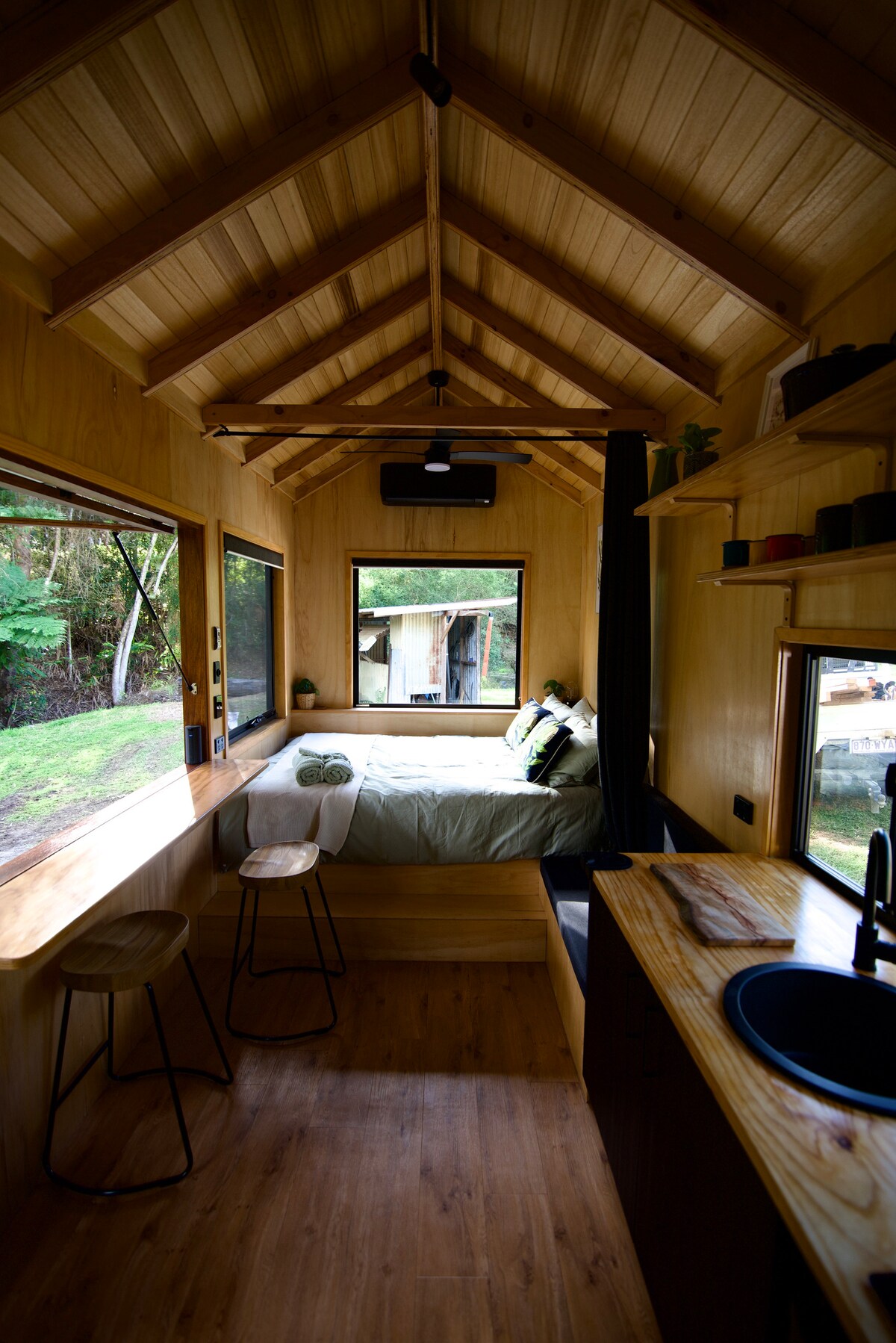 Sunshine Coast hinterland-da sakit bir istirahət məkanı olan Blak Şakda təbiətlə yenidən əlaqə qurun. Bir vaxtlar ananas və banan fermasındakı ağacların üstündə yerləşən bu lüks ağac ev təbiət qoynunda rahat istirahət təklif edir. Montvilin butik mağazalarından, kafelərindən və sahil mənzərələrindən cəmi bir neçə dəqiqə sonra dincəlmək üçün mükəmməl bir yerdir. Göyərtədə dincəlin, yerli çimərlikləri və şəlalələri araşdırın və ya sadəcə hamamda islanın. Blak Şak enerji toplamaq və hinterlanddan zövq almaq üçün ideal yerdir.