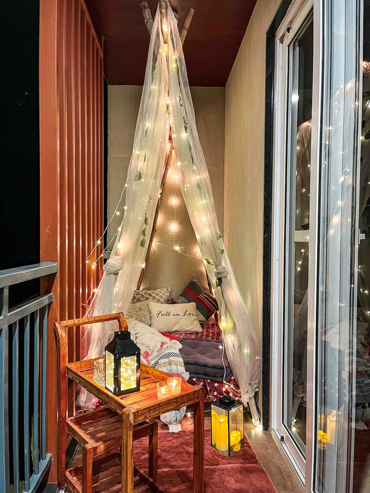 This 1 BHK is a fully furnished flat with a 20 feet running balcony in a peaceful locality of Shimla. The property has a romantic cabana setup in the balcony where you can read a book, enjoy the sunset skies or have some soulful conversations. The bedroom is tastefully done with the unique palette bed and minimalist interiors. The property has high speed WiFi & all OTT subscriptions, 24*7 power backup, lift connectivity, dedicated car parking space & an open rooftop with 360 valley views.