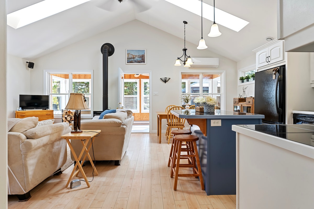 The Trinity Airbnb - where century charm meets modern style. Formerly a church, tastefully converted to an open concept home. Boasting a fully equipped eat-in kitchen, large sitting area, spacious bathroom and seasonally furnished veranda. Marvel at the original stained glass windows & 28ft wood ceilings while enjoying the convenience of modern living.