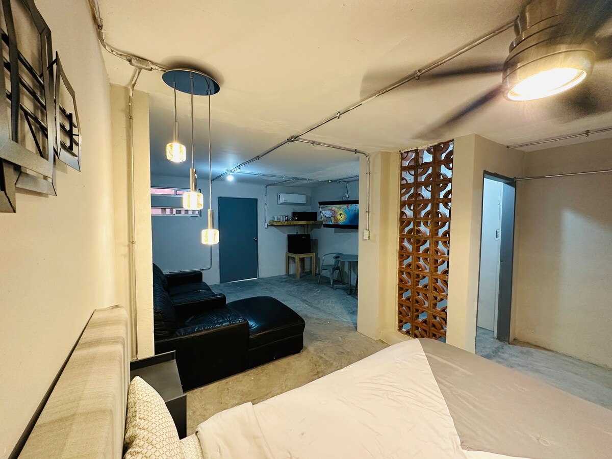 Suit moderna con un toque industrial, con baño propio, cocina, climatizados con A/C Frio-Calor, internet de alta velocidad, Smart Tv (Netflix abierto), Sala recibidor área común, Extintor (4), Detector de humo en cada habitación, USB Charge center por habitación. Increíbles para Turismo Laboral, Medico o Familiar. Lugar muy céntrico, tranquilo, ubicado en una de las zonas más céntricas y seguras de la ciudad. Disfruta del fácil acceso a Consulado, a 3 Puentes internacionales y la playa.