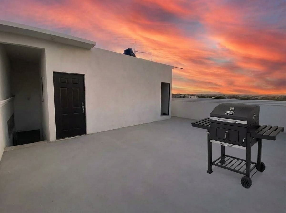 Aojamiento ideal para familias, reuniones y fiestas, tiene asador y el área sin problema de ruido. Con dos habitaciones. La habitación principal con baño privado, cuenta con una cuna para bebés. La segunda habitación con cama canguro matrimonial y individual. En la sala un sillón en el que sin problema puede dormir alguien mas. Tiene cochera para 2 vehículos y está completamente enrejada para su seguridad. Totalmente climatizada. A 11 minutos del puente internacional y tiendas de conveniencia.