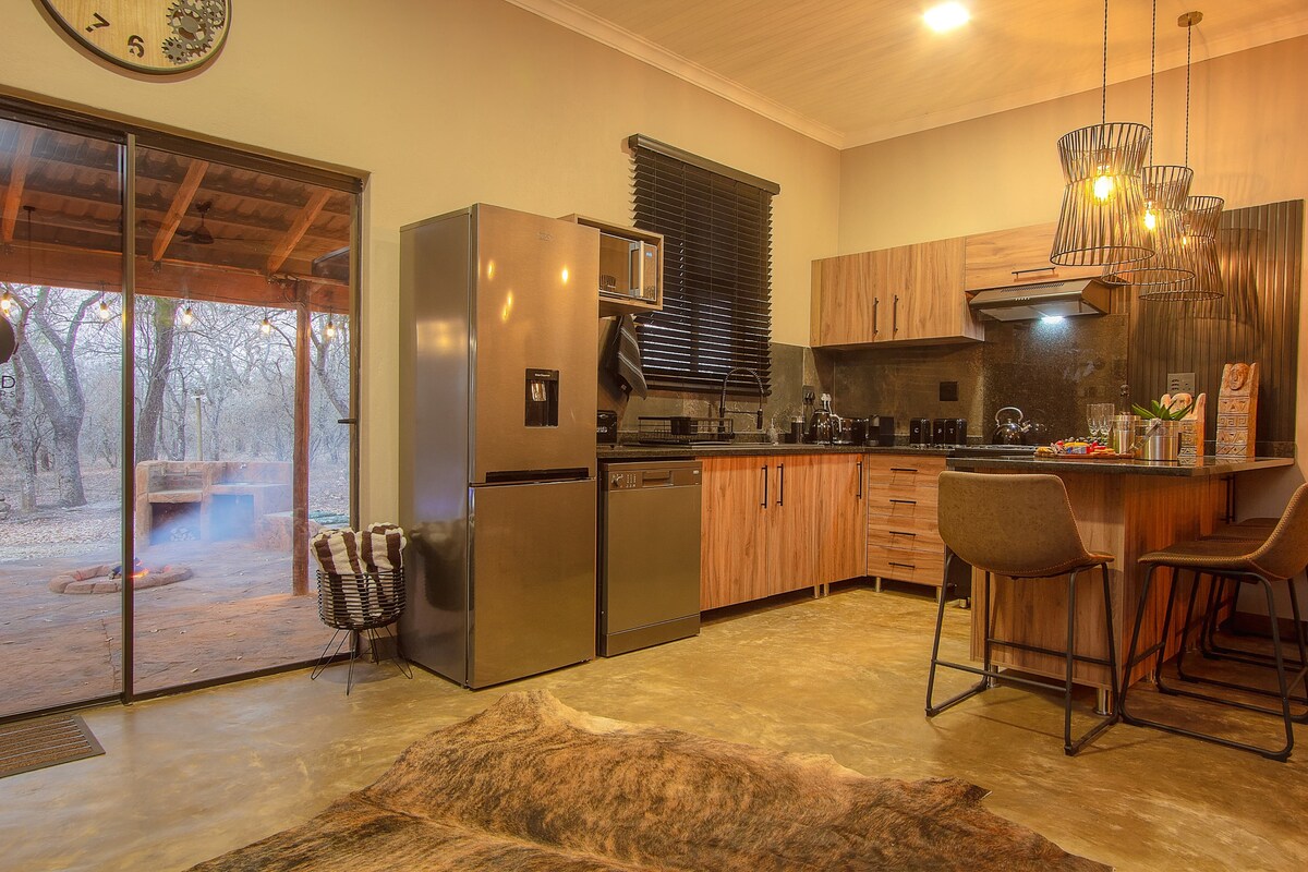 Safari macəranıza Kruger Parkı ilə sərhəd olan hasara yaxın, gözəl və geniş villa olan Serenity-dən başlayın. Birbaşa park ərazisinə baxır. Heyvanlar sərbəst gəzir və hər gün ziyarət edirlər. Tam təchiz olunmuş mətbəx. İsti günlər üçün verandada tavan ventilyatorları var. Bütün otaqlarda ventilyatorlar, hər iki yataq otağında kondisionerlər, çarpayı ölçülü çarpayılar və otaqlarda hamam otaqları. Oturacaqlı hovuz, örtülü barbekü. Qonaq otağı, veranda, yataq otağı və hamam əlil arabası üçün uyğundur. Afrikanın ən yaxşı çöllərindən zövq alın Kruqer parkına 20 dəqiqə