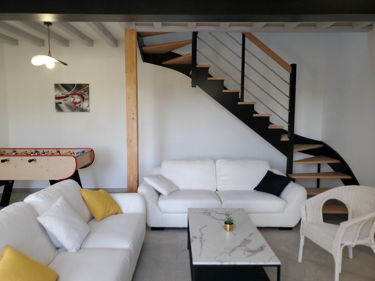 Cette maison aménagée dans un esprit loft, offre un espace chaleureux et confortable, entièrement meublé, équipé (draps et serviettes fournis sans supplément) et climatisé, idéal pour un séjour reposant en toute intimité. 🤱Possibilité pour un séjour en famille avec un enfant, le logement dispose d’un espace nuit adapté et d’un jardin clos et sécurisé, parfait pour profiter de l’extérieur en toute tranquillité.