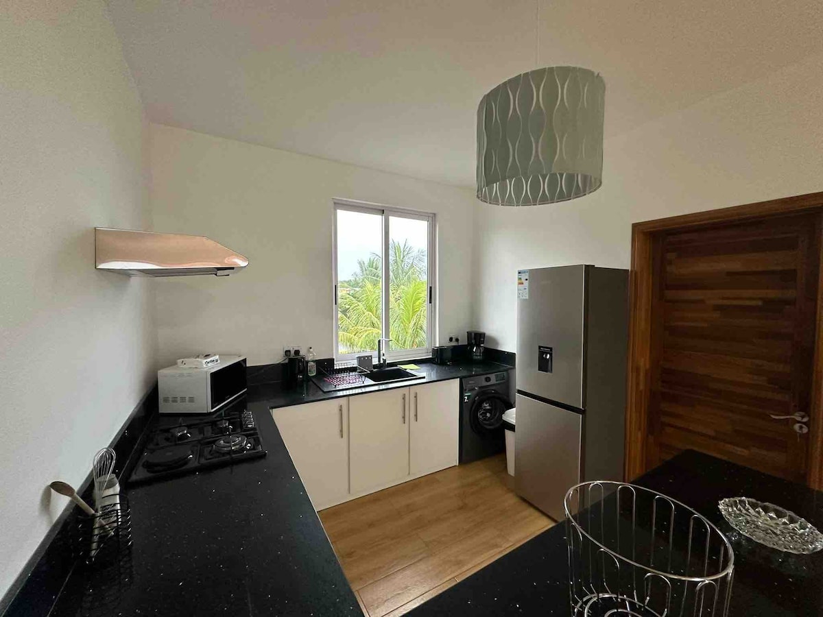 This flat offers a comfortable and authentic experience. You will enjoy the proximity to the beach (7 min from the kite / wind spot), the relaxing old fishing village atmosphere. This flat includes an air-conditioned bedroom with queen size bed, wifi, office area, a small terrace and a large lush garden with barbecue area and a shared pool. Several activities are nearby such as kitesurfing, windsurfing, wakeboarding, horseback riding, Chamarel, Casela park, swimming with dolphins...
