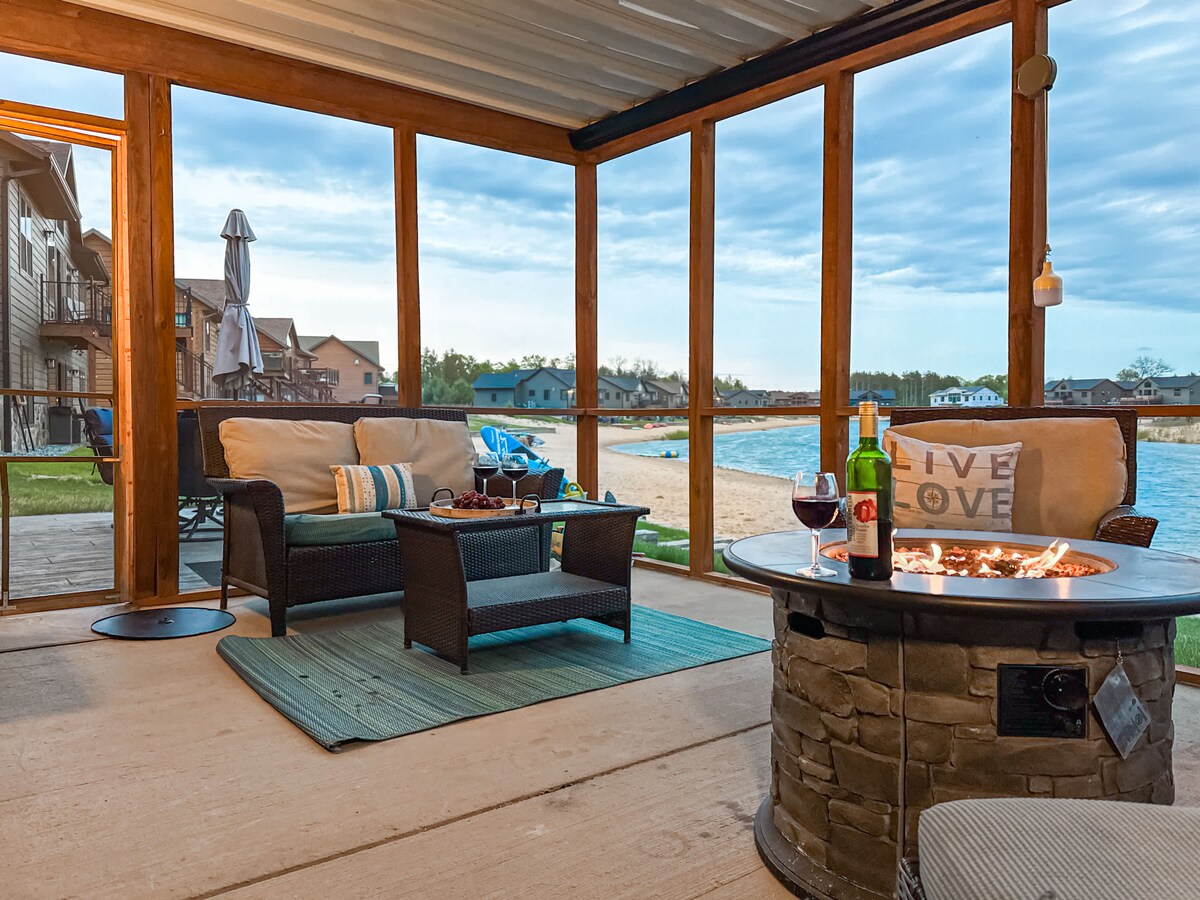 Dupleksin bu birinci mərtəbəsində 8 nəfər yatır. Dellsə cəmi 20 dəqiqəlik məsafədə yerləşir. Böyük həyəti olan su mənzərəli. Mərkəzdə yerləşir, yemək, əyləncə, alış-veriş və balıq ovuna yaxındır. Maustonun piyada körpüsü olan yeni sahilyanı piyada yolunda yerləşir. Ailə ilə birlikdə yeni Riversayd Parkına gəzintiyə çıxın. Hər otaqda tam mətbəx böyük yemək masası və Roku televizorları. Unikal dekorasiya və əyləncəli divar sənətindən zövq alın. Qab-qacaq, gümüş qab-qacaq, qab-qacaq və kiçik avadanlıqlarla tam təmin olunub. Mauston mükəmməl rahatladıcı kiçik şəhərdir.