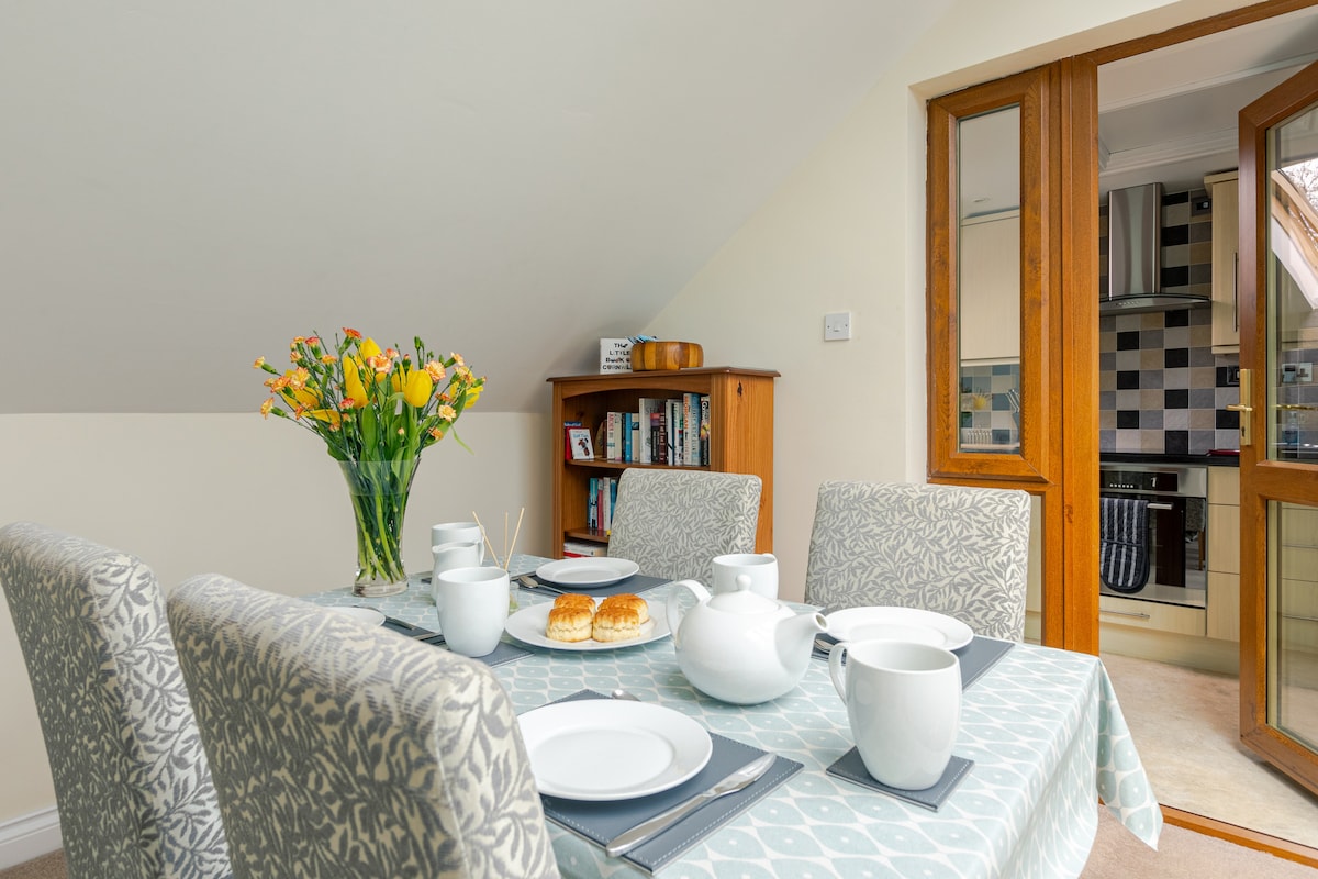 Little Bosvethan is a spacious, well proportioned, two-bedroom apartment located above the main house, Bosvethan and set in a peaceful location in open countryside. The location is just a ten minute walk to the beautiful village of Mawnan Smith and a footpath leads you to the popular sandy Maenporth beach and further scenic coastal walks. You'll find some stunning walks, gardens and places to eat or visit within easy reach and there's everything you need if you want to cook for yourselves.