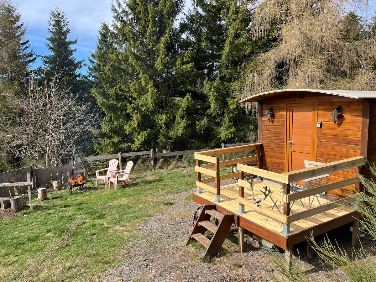 Meşə və geniş açıq sahələr arasında, Ardeş dağının mərkəzində. Taxta treyler, qeyri-adi, təbiətlə əhatə olunmuş, dağın ortasında, 1260 metr yüksəklikdə ideal mövqedə yerləşir. Ərazidə it xizəyi quruluşu. 4 mövsümlük fəaliyyətlər 🐾 Təbiət və heyvan sevərləri, treylerimiz sizi unudulmaz, sərbəst qonaqlama üçün gözləyir. Limitrophe Ardèche, Lozère və Haute Loire. İdeal yaşıl turizm, açıq hava fəaliyyətləri və həyatın sadə şeyləri ilə yenidən əlaqə qurmaq. ⛰️☀️🌲❄️🐾🍂🪶