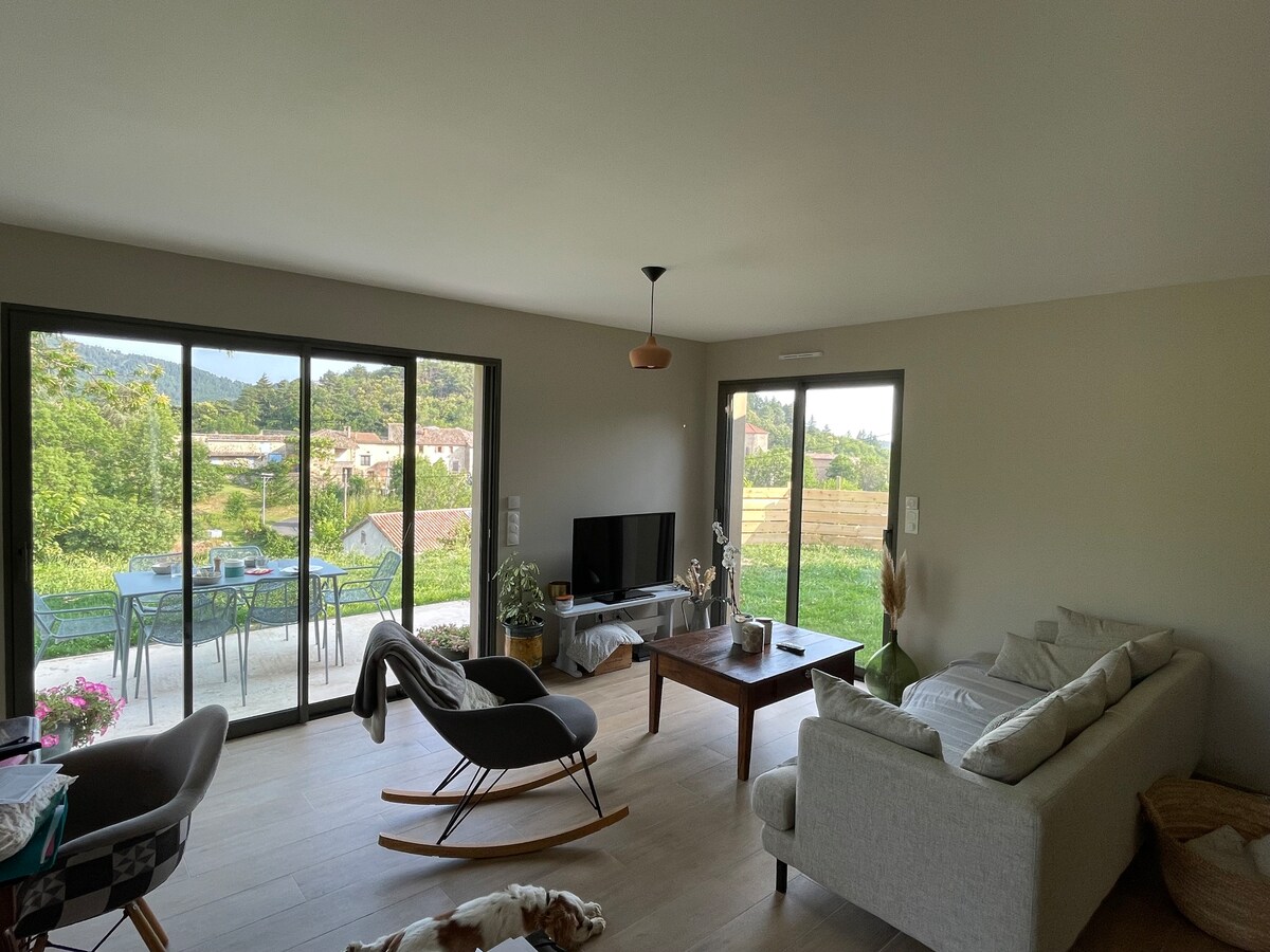 Sahələr və albalı ağacları arasında təbiət qoynunda 100 m² gözəl yeni ev. Ailələr və ya dost qrupları üçün xoş anlar üçün əlinizdəki terraslar, bağça, barbekü. Ev 3 yataq otağı və geniş açıq məkanı, tam təchiz olunmuş mətbəxi, qonaq və yemək sahəsi ilə işıqlıdır. Ardèche dərələrinə və bir çox turistik yerlərə yaxındır. Müxtəlif yürüyüş yolları evin yanındadır. Bu, bizim əsas yaşayış yerimizdir.