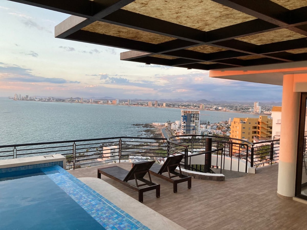 Geniş terras, ayrıca hovuz, açıq havada barbekü barbekü və dənizə, taxta və bütün Mazatlan şəhərinə inanılmaz panoramik mənzərəsi olan ayrıca penthaus. 4 yataq otağı var (hamısı dənizə baxan terras ilə) Taxtakörpü, çimərliklər, restoranlar və tarixi mərkəzin yaxınlığında, yüksək dalğalarda əla turistik mövqeyə malikdir.
