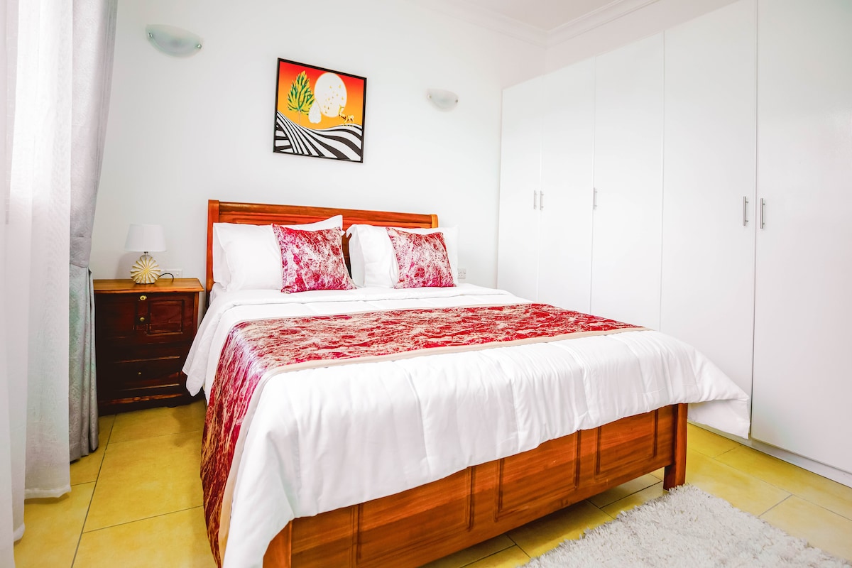 Bu 1 yataq otağı, 1 hamam otağı olan mənzil 24 saat təhlükəsizliyi olan təhlükəsiz paylaşılan birləşmədə yerləşir və Bahari Çimərliyindən cəmi 1 kilometr məsafədə yerləşir. Mərkəzdə məşhur yerli Nyuki Bazarı, Kibo Complex Mall və Jambos Supermarketinin yaxınlığında yerləşir. Tam təchiz olunmuş mətbəx, kiçik yemək sahəsi, kiçik oturma sahəsi, gözəl bağça və Wİ-Fİ. Bankomat küncdə yerləşir və yaxınlıqdakı ərazidə bir neçə yerli restoran var.