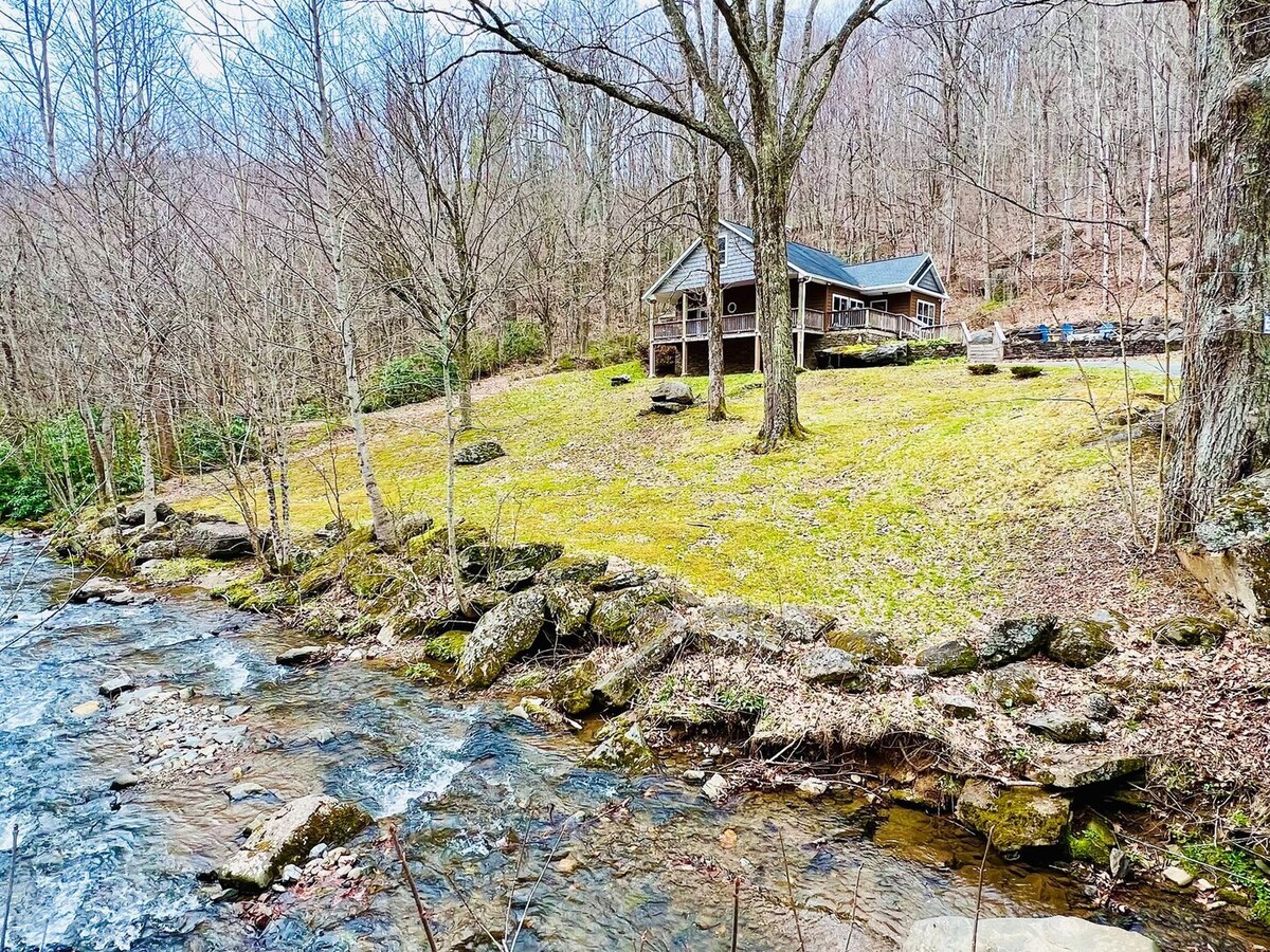 Gorgeous Mountain Home located on rushing TROUT STREAM, HOT TUB, Outdoor FIREPIT, privately located just minutes from Boone. Covered Front porch, small pond on property, Easy access. Newly furnished, Custom Kitchen with Granite counter tops. Amazing hardwood floors, stone fireplace, comfortable furnishings throughout. The owners spared no expense and overlooked no details in this home. You will be pleasantly thrilled when you walk in the door!