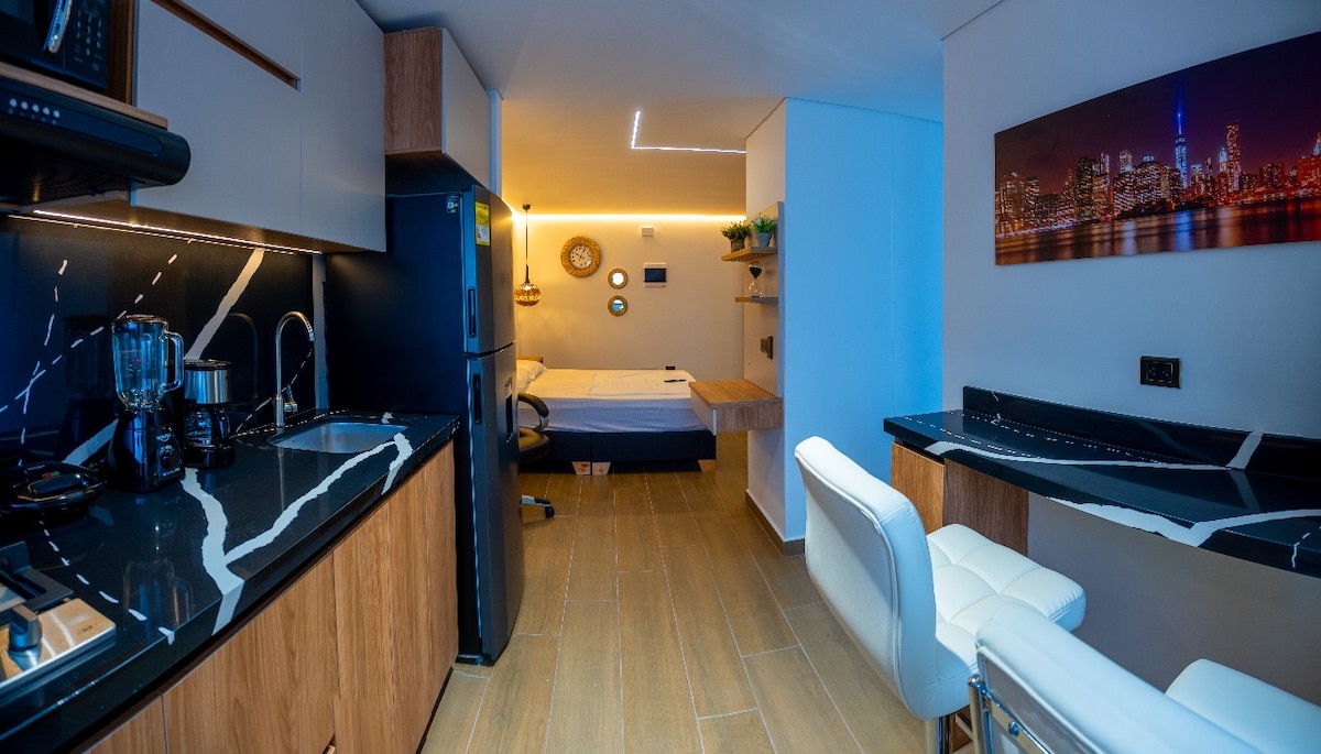 Bu möhtəşəm mənzil el Pobladoda yerləşir. O, hər şeyin qalınlığında olmadan hər şeyə yaxın və bəyəniləndir. Hava limanından 30 dəqiqəlik məsafədə, ən yaxşı restoran və barların yerləşdiyi uber vasitəsilə isə 7 dəqiqəlik məsafədə yerləşir. Yerləşdiyi binanın imkanları arasında üzgüçülük hovuzu, idman zalı, iclas otaqları, restoran və səhər yeməyi üçün otaq xidməti var. (qeyri-məcburi) Şübhəsiz ki, Medellində qalmaq üçün ən yaxşı yerlərdən biri ;)
