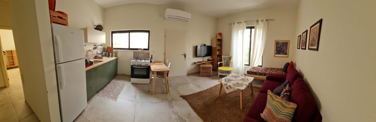 Üzüm bağları arasında sakit bir kənddə, yaşıl bağ 🌿 və müasir rustik dizaynı olan romantik bir kənd mənzili. Tam təchiz olunmuş mətbəx, bağdan təzə otlar, stolüstü oyunlar və televizor. İstirahət üçün mükəmməldir - yaxınlıqda təbiət cığırları var 🌳. Şəhər həyatından uzaqlaşaraq dincəlmək üçün gözəl bir yer sizi gözləyir! ★"Məkan təmiz və gözəl idi, mətbəx yaxşı təchiz olunmuşdu. Ərazi möhtəşəmdir. Nitsan çox operativ idi və əla tövsiyələr verdi. Mütləq tövsiyə edirəm!" - Son qonaq