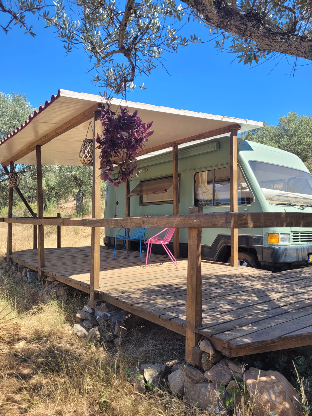 Zeytun ağacları arasında məftunedici istirahət avtomobili.
