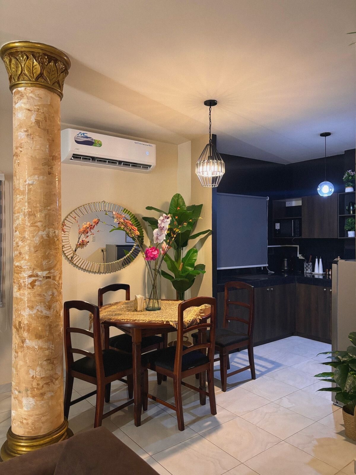 Disfruta de una experiencia con estilo en esta suite ubicada frente al centro comercial más importante de la ciudad. Una zona segura y con todas las facilidades a pocos metros de ti. 1 habitación master con baño privado Sala/ comedor con baño social. Sofá cama Patio con hamaca Refrigeradora y cocina completa. TV Smart Aire acondicionado Estacionamiento privado gratuito Farmacias y áreas comerciales muy cerca Perfecto para parejas o viajeros solos que buscan comodidad y ubicación privilegiada.