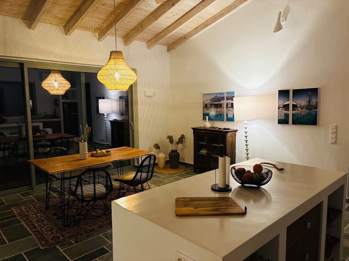 Bu ev maksimum dörd nəfərin yerləşdiyi unikal və sakit tətildir. İki nəfərlik və/və ya tək ola bilən iki çarpayısı olan iki geniş yataq otağı saxlayır. Tam təchiz olunmuş mətbəxi, yemək sahəsi və qonaq otağı olan geniş məkan da mövcuddur. Bundan başqa, burada açıq üzgüçülük hovuzu, rahatladıcı məkanlar və bina cakuzisi (əsas evdən kənarda) var. Dəniz mənzərəsi möhtəşəmdir və heç kimin darıxmaq istəmədiyi bir an səhər doğan günəşdir!