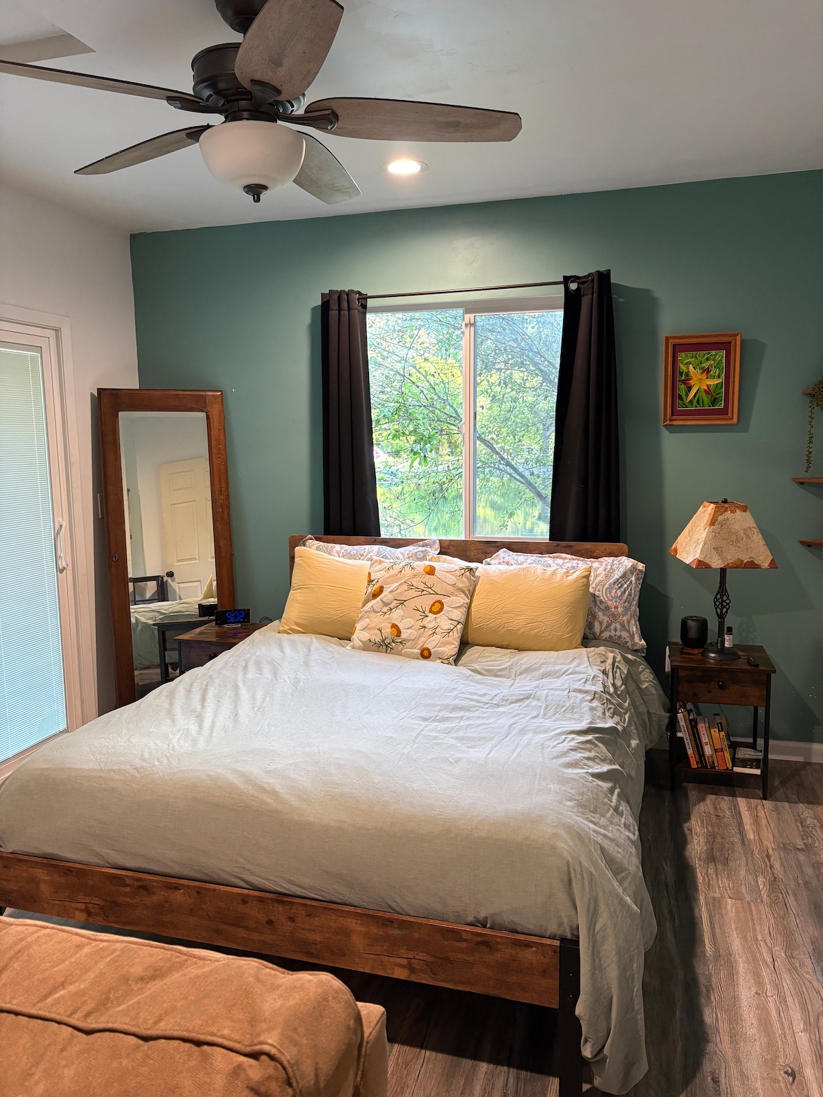 Studiya günəşlə dolu, geniş vanna otağı olan çox geniş ayrıca otaqdır və əsas evin arxasındakı ayrıca binada yerləşən böyük gül və meyvə ağacı ilə dolu həyətdə yerləşir. Həyət tez-tez Feliks ilə oynaq tuxedo pişiyimiz və Blossomumuz McNab Shepherd ilə paylaşılır. Həmçinin tam mətbəx, paltaryuyan maşın və quruducunun olduğu "Osprey Aerie" mənzilini icarəyə veririk.