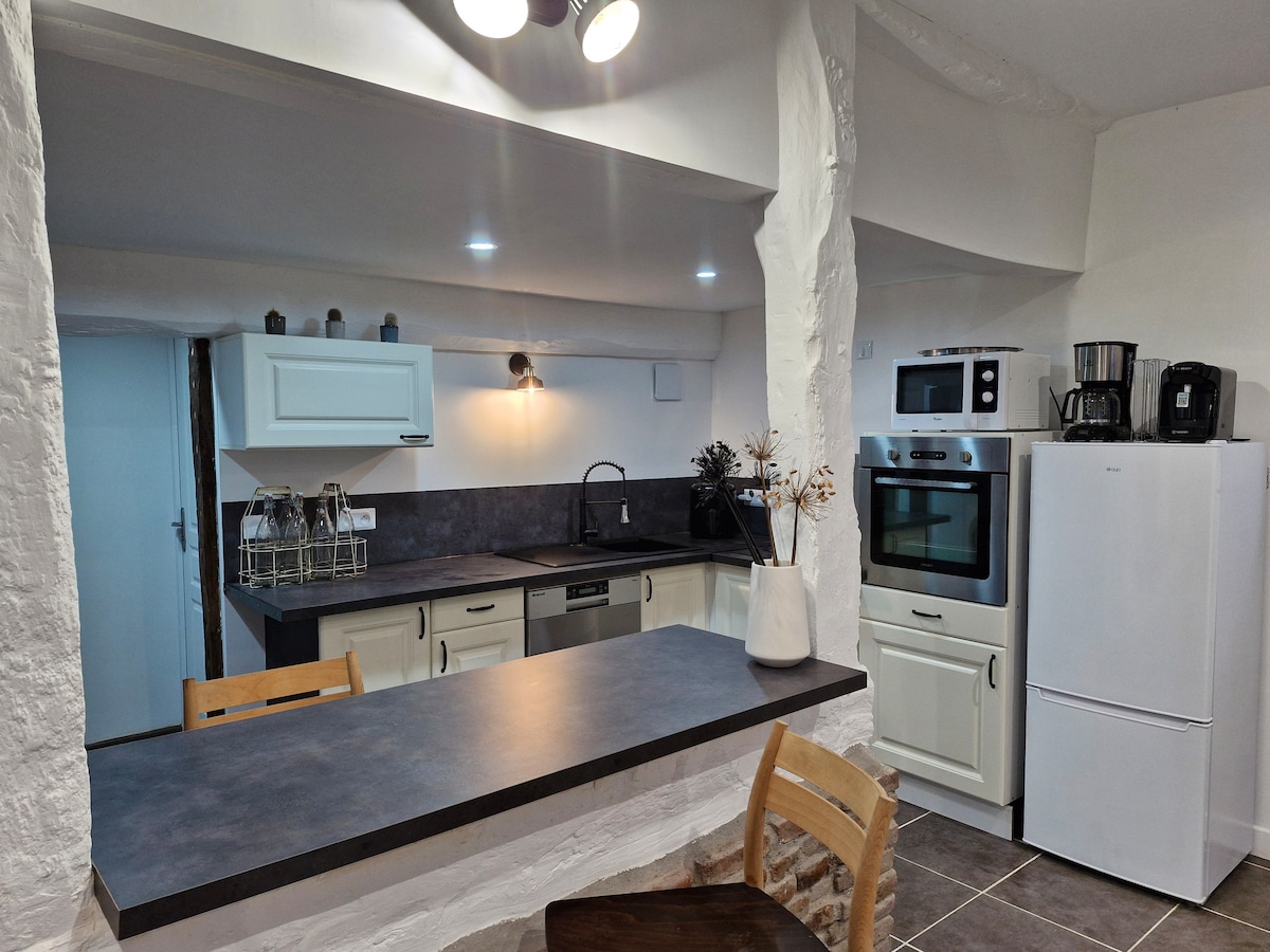 Profitez d'un logement élégant et central. Maison de village: 1 salon avec cheminée (bois fourni), cuisine toute équipée (lave-vaisselle, micro-ondes, bouilloire, grille-pain etc...), patio ensoleillé, 1 chambre lit 160x200, 1 chambre 2 lits 90x200 (lit parapluie possible/chaise bébé), salle de bain (baignoire), wc séparés, wifi, coin bureau et coin enfants. Ce logement vient d'être totalement réhabilité. Très calme. Beaucoup d'activités alentour (équestre, pédestre, cycliste, divers commerces).