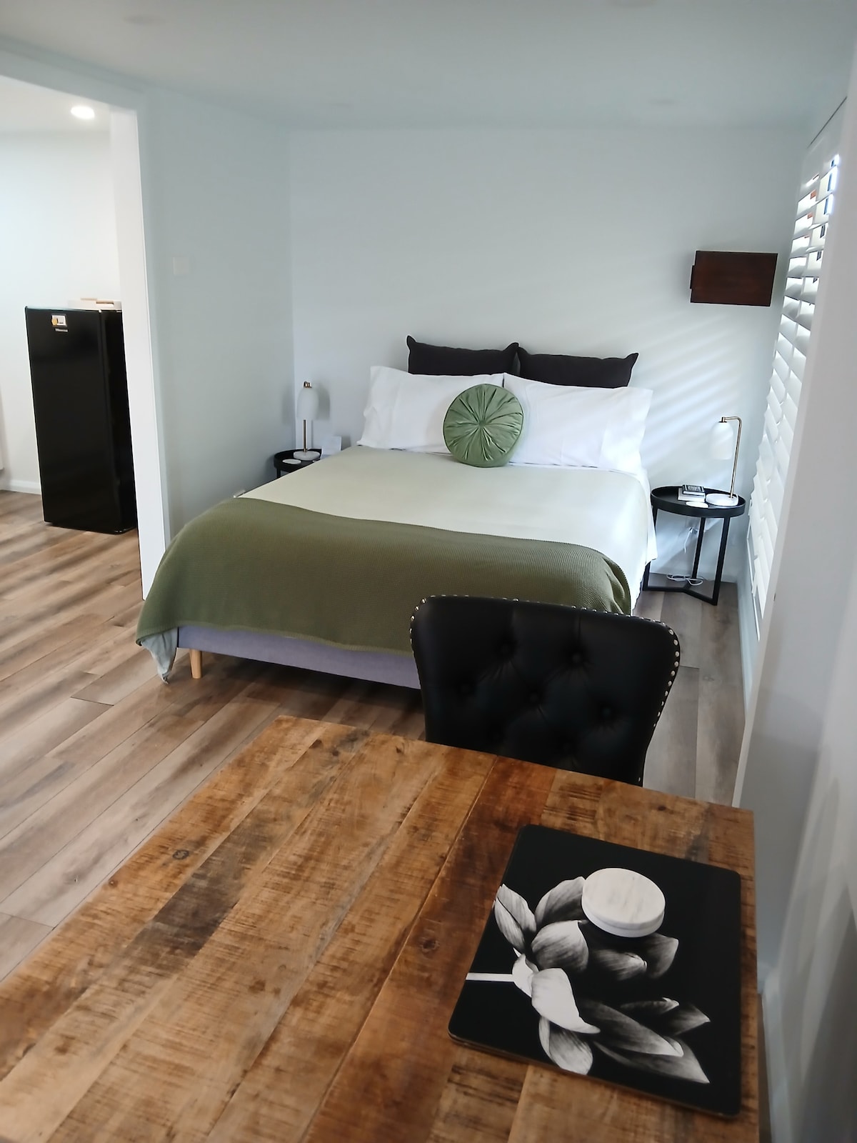 Ideal for professionals, singles, or couples, our centrally located guest house is situated by Mildura's riverfront, Arts Centre, and close to the CBD and sleeps two in a comfortable queen bed. It features split system air conditioning, walk-in robe, Wi-Fi, laundry, and kitchen. Enjoy the warmth of the stylish light-filled space, garden, chickens, and dog, Lil. A relaxing stay in sunny Mildura awaits. Complimentary bread, milk, tea, coffee, fresh eggs, and basic toiletries are provided too. 😀
