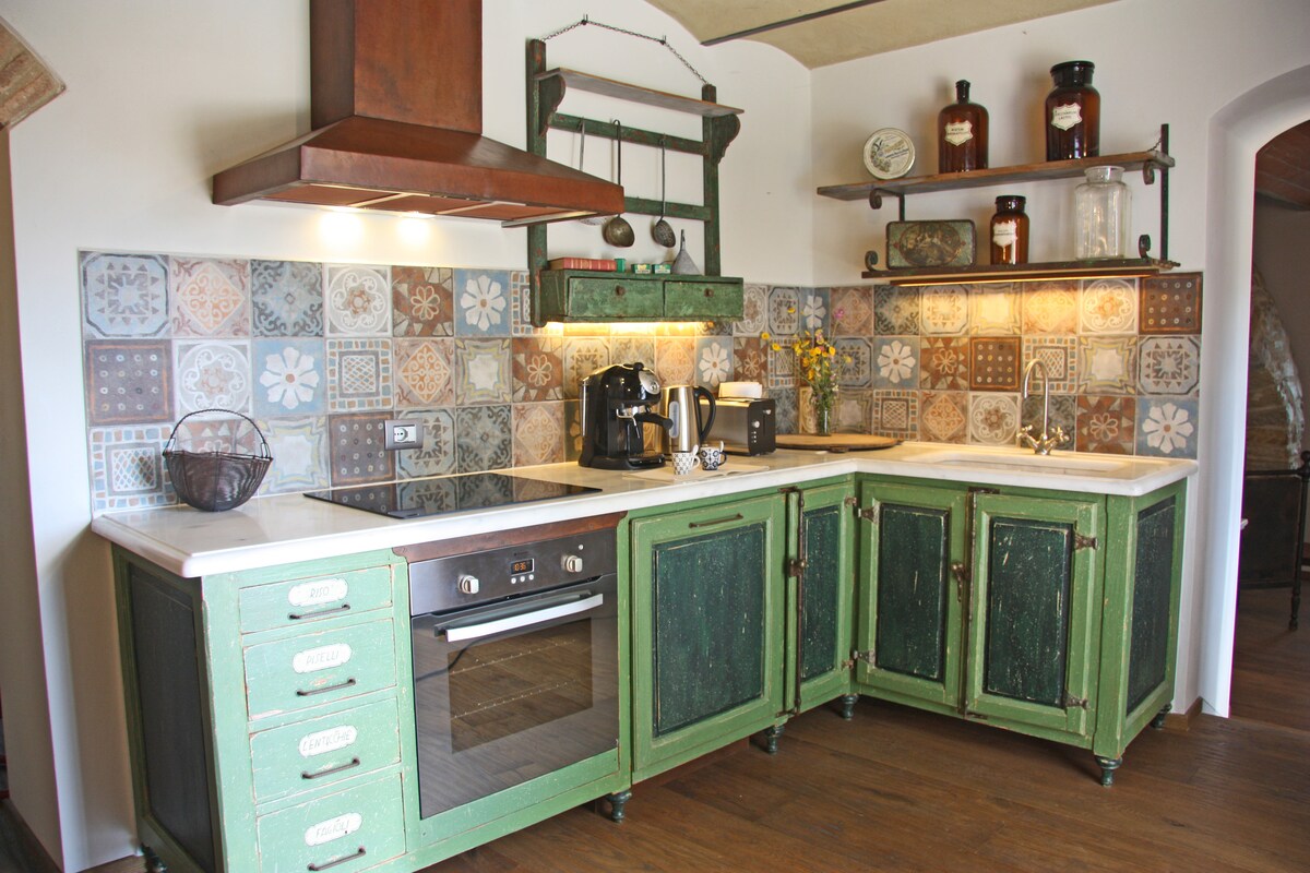 Mənzərələr, mənzərələr, sözüm, mənzərələr! 12-ci əsrin əvvəllərində yaradılan bu möhtəşəm ev bir vaxtlar bütün kəndin un məmulatları mağazası kimi fəaliyyət göstərirdi. İndi tam təmir edilib, giriş və yer səviyyəsi təbii işığın açıq divarları, 4 böyük yataq otağı, 3 hamam otağı (cakuzi daxil olmaqla) işıqlandırmasına imkan verən şüşə tağlarla açılıb. Chianti 'nin məşhur Şərabxanalarından yalnız bir neçə dəqiqə uzaqda olan bu yer dostlar arasında şüşə üçün bir yerdir.