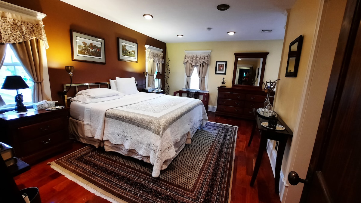 Only 10 minutes from Princeton University, this private and luxurious historic home sits on three beautifully landscaped acres along the picturesque D&R Canal, bordering a peaceful nature preserve. Designed for both relaxation and connection, it features a spacious layout, elegant interiors, and upscale amenities. Guests can also enjoy several charming accessory structures, including a fully equipped Game House with its own bedroom, making it the perfect setting for family gatherings, retreats,