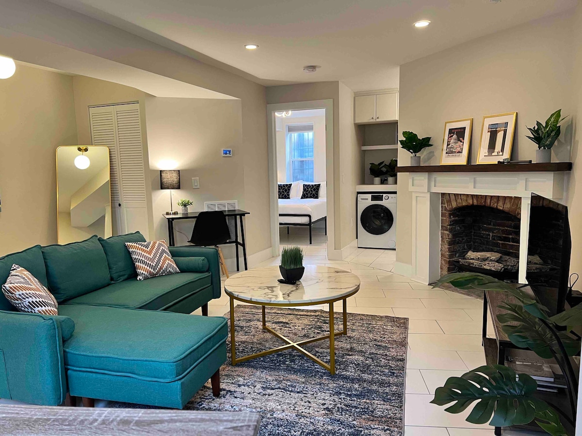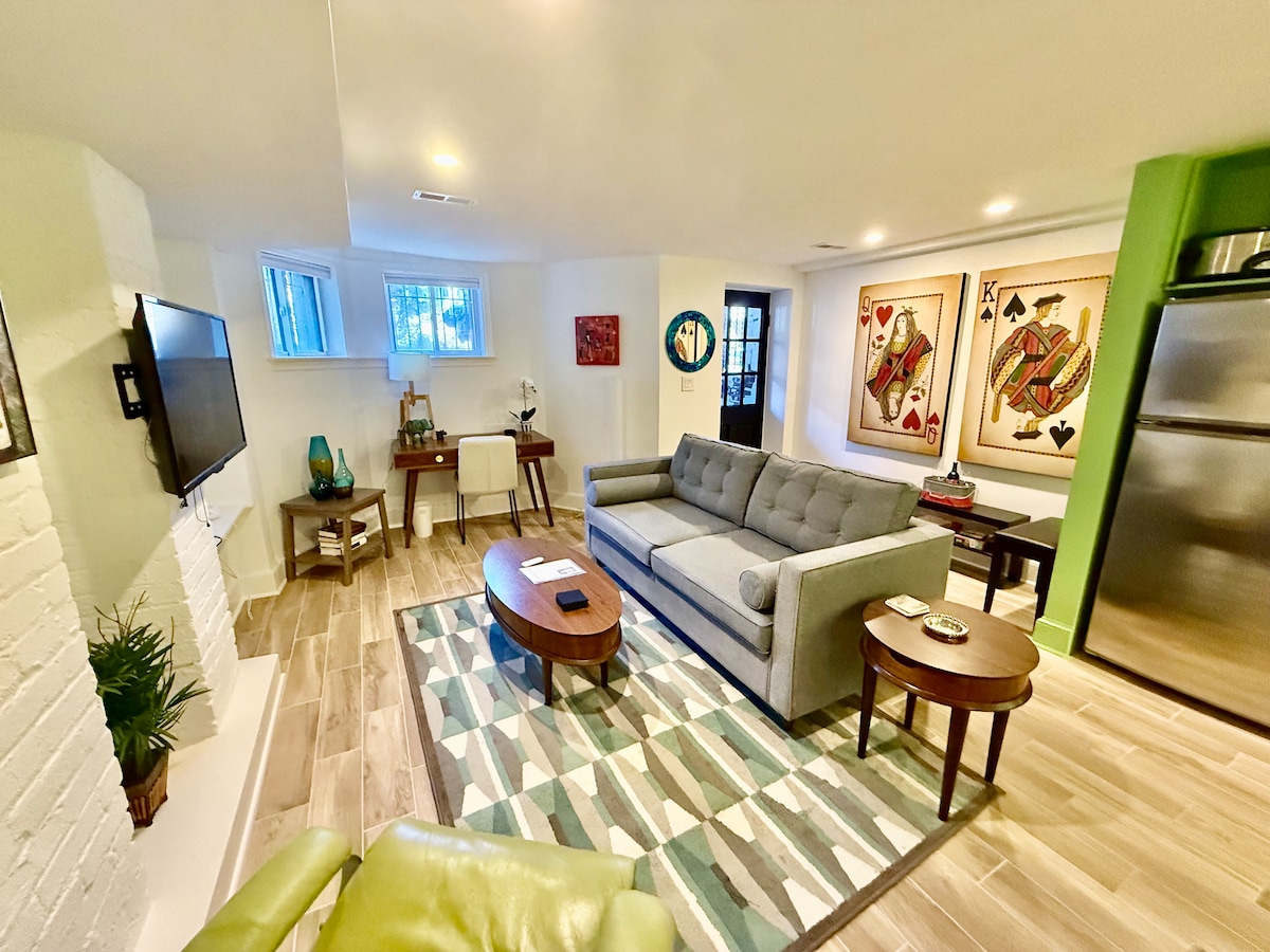 Newly renovated 1200 sq. ft. flat in heart of trendy Logan Circle. Light-filled, warm wood floors, new furnishings, private unit with open floor plan on first level of an historic row home built in 1898. Located just one block away from the restaurants, coffee shops, bars, theaters, and LGBTQ nightlife on 14th St. Whole Foods, CVS, Trader Joe’s, Dupont Circle and U St neighborhoods, metro stops, are all steps away. Short taxi/metro/walk to National Mall, Convention Center, and sightseeing.