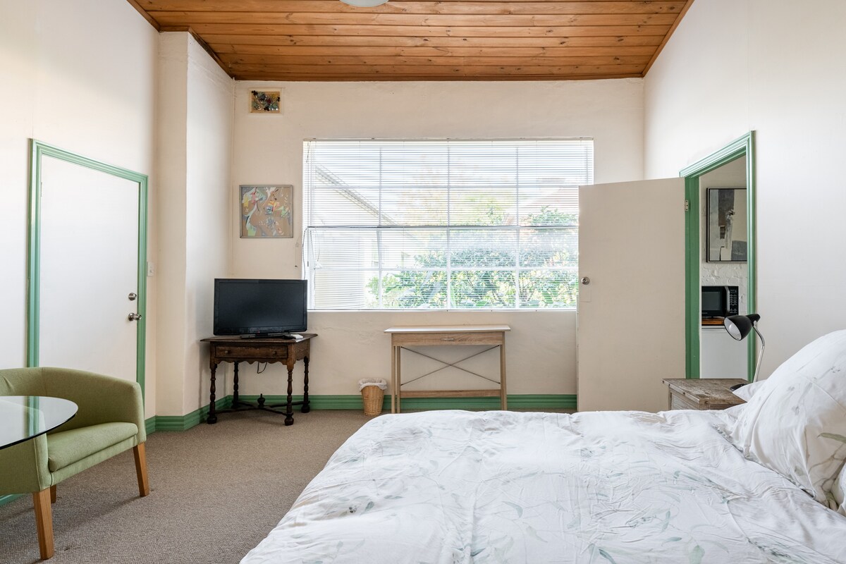 Ayrıca Studiya Banqalosu Xoş bağ dünyagörüşünə malik dəbli qonaq studiyası banqalo. Xüsusi giriş. Netflix, WiFi və kiçik mətbəxtli televizorlu rahat yaşayış sahəsi (vanna otağı çanağı vasitəsilə istifadə olunan su.) İkinci yataq otağı üçün əlavə qonaq otağı və tək divan çarpayısı olan rahat ikinəfərlik çarpayı və kiçik ikinci otaq. Vestqartın mərkəzində ictimai nəqliyyatdan və möhtəşəm Vestqart Kinoteatrına, kafelərə və gecə həyatına piyada 1 dəqiqəlik məsafədə yerləşir. LGBTQ - səmimi.