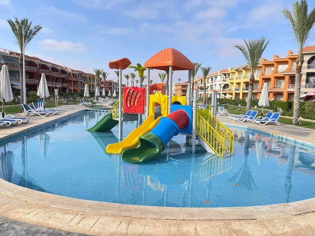 Amazing Two Bedrooms Sea View Chalet in Porto Matrouh - with Aqua Park, beach access, kids area, garden, outdoor pool and terrace. The accommodations are fully air-conditioned.