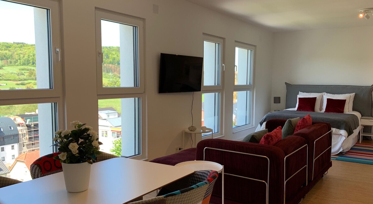 Xüsusi girişi olan Trendy studiyası (40m2). Yüksək sürətli internet, ağıllı televizor, dizayner masası ilə işləmək üçün idealdır. Məkana tam təchiz olunmuş mətbəx, yeriş dolabı, hamam-tualet, ayrıca bağa giriş (yola görə səs-küylü) və pulsuz parkinq daxildir. Avtobus dayanacağına (Kirçberqə birbaşa xətt), supermarketlər, restoranlar, apteklər, quru təmizləmə, ictimai üzgüçülük hovuzu, fitnes, yürüyüş və velosiped cığırlarına piyada məsafə. Hava limanına (13km), Kirçberq (13km) və Lüksemburq şəhər mərkəzinə (17km) asan giriş.