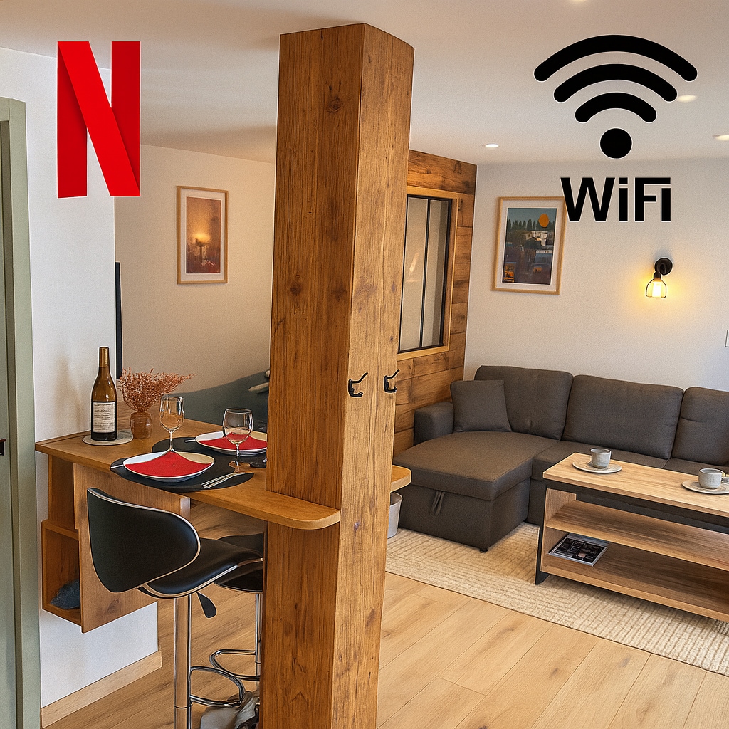 Pagotin tout confort refait à neuf 35 m², petite cour, Poêle à pellets Idéal 2 adu + 2 enf Proche commerces, pistes, cinéma , air de jeux Cuisine équipée, canapé convertible 2 places Chaise haute, lit parapluie Chambre à l'étage 1 lit 180x190 + 1 lit 90x190 Local skis. Parking ext. gratuit Option ménage sur demande (de 20 à 45 euros selon la durée du séjour) Wifi fibre Caution 300 euros (restitution fin de séjour)