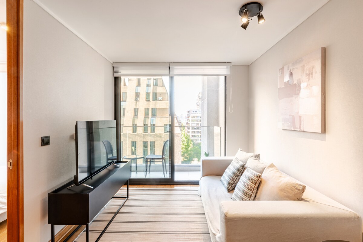 Metropoliten Regionunun ən eksklüziv məkanlarından birində yerləşən yeni mənzil. Las Condes-in əsas yaşıl sahələrindən biri olan Parque Araucano, Nueva Las Kondes maliyyə sektorundan, eləcə də Mall Parque Arauco, Açıq AVM, Banklar, supermarketlər, qida verandaları və Alman Klinikasından addımlar. Mənzil əla qonaqlama üçün lazım olan hər şeylə təchiz olunub. Burada böyük ölçülü çarpayı, divan çarpayısı, ikiqat pərdələr, 55"televizor, Nespresso qəhvə maşını, qabyuyan maşın var.