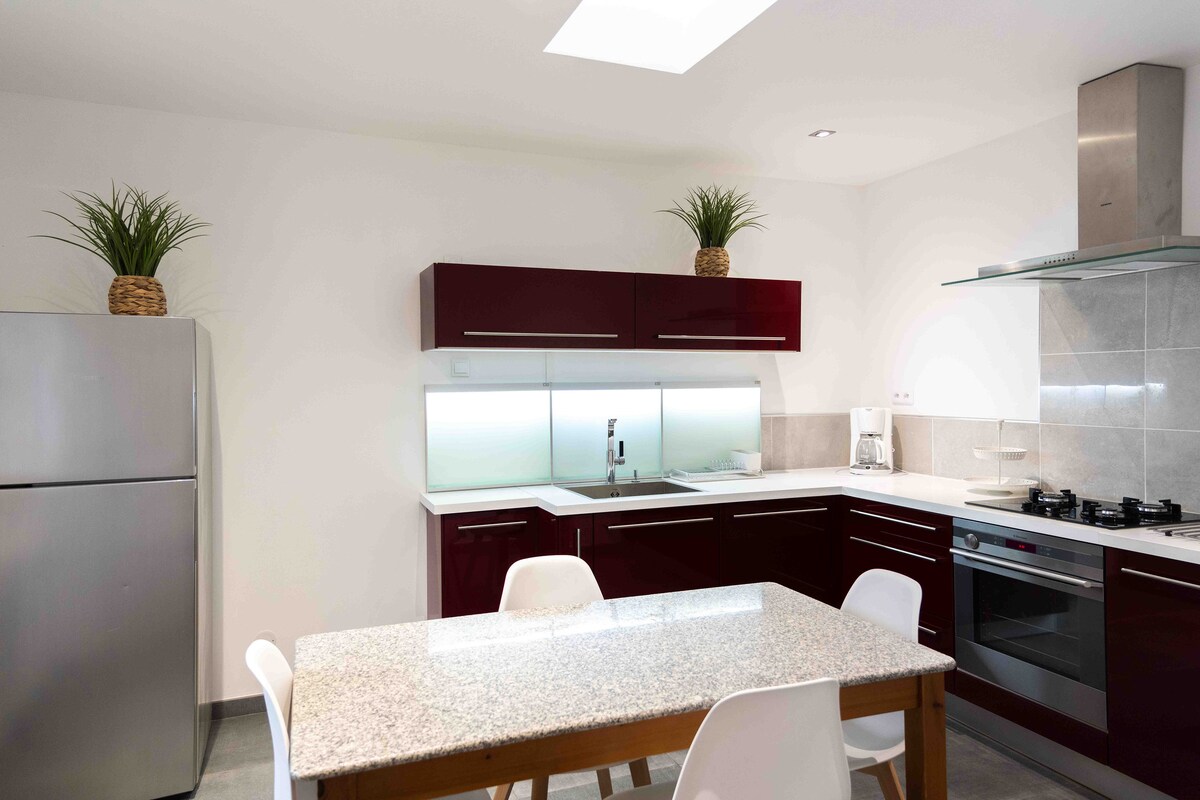 Tournusdan 5 dəqiqəlik məsafədə, bağ və bir çox uşaq oyunları olan sakit ailə kotteci. Geniş, çox təmiz və mükəmməl təchiz olunmuş yaşayış yeri, sakit ailə qonaqlaması və ya Cənuba gedərkən dincəlmək üçün ideal bir yer. ⭐ 4 ulduzlu, 70 m²-lik, kondisionerli, ikiqat, avadanlıqla təchiz olunmuş terras və şəxsi parkinqi olan mənzil. 2 yataq otağı, 2 hamam otağı, 2 ayrıca tualet, əla yataq dəsti. Ayrı giriş, bağlı əmlak, gəlişdə hazırlanmış çarpayılar, dəsmallar, paltaryuyan maşın, qabyuyan maşın, qoşulmuş televizor.