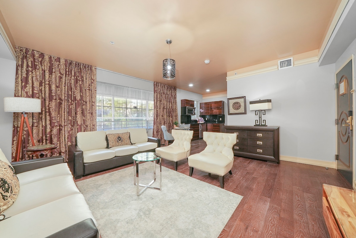 This chic one-bedroom suite offers a relaxing and comfortable stay in vibrant Miami Beach, just a short stroll from the shore. Enjoy a plush bed, spacious seating area, dedicated workspace, and a convenient kitchenette. Thoughtfully designed with modern décor and quality amenities, it provides a welcoming retreat, perfect for unwinding after sunny beach days and experiencing Miami’s lively atmosphere.