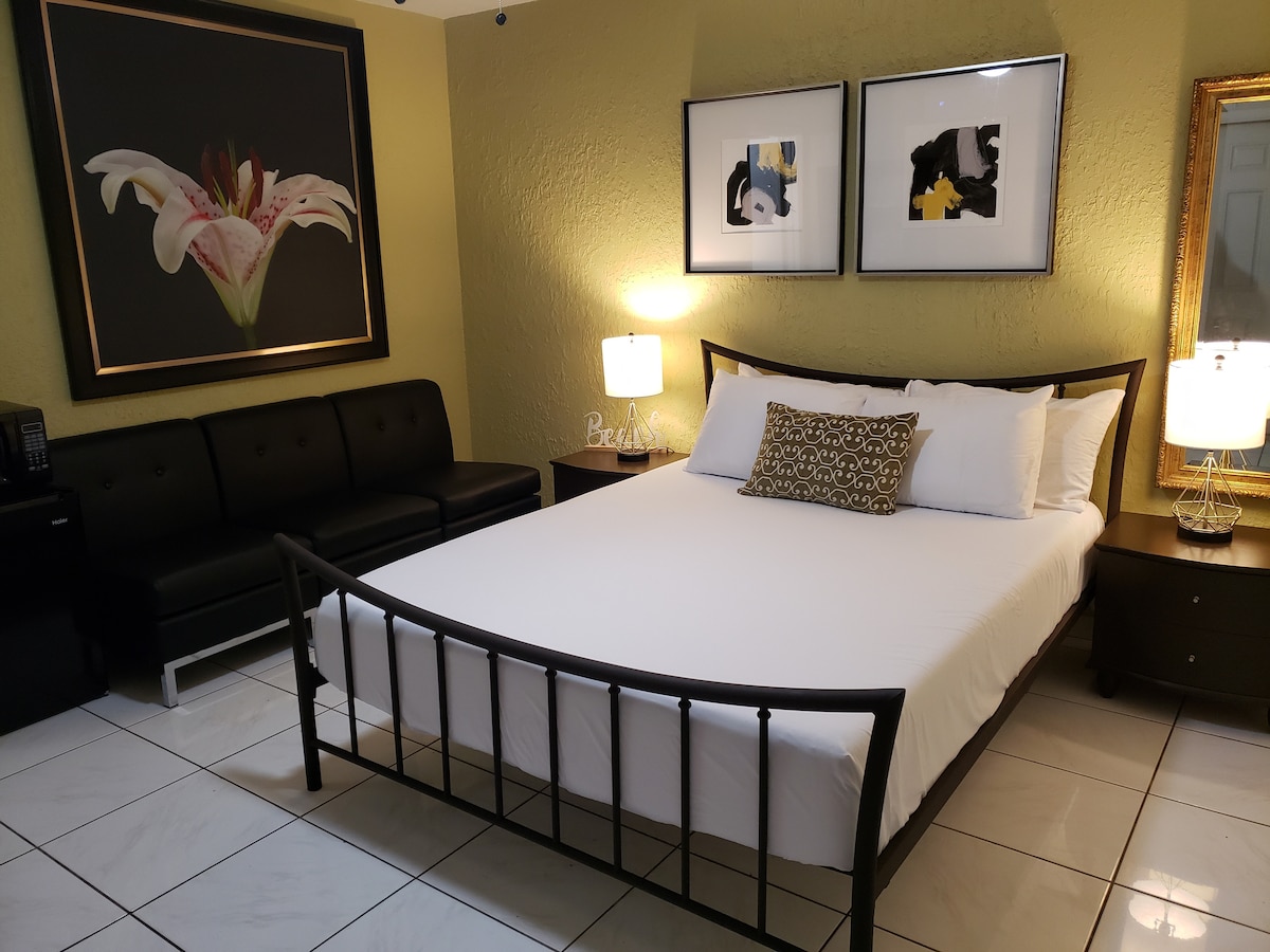 Mayamidən tropik üslublu böyük, geniş və dəbli bir suitdə zövq alın🌴 Özəl giriş və PULSUZ qapalı rahat parkinq. Rahat 150-179 sm ölçülü çarpayıda dincəlin və ən yaxşı imkanlardan yararlanın: soyuducu, mikrodalğalı soba, açıq hava salonu, cakuzi, böyük müasir hamam otağı və 55 düymlük televizor. Hava limanından bir neçə dəqiqəlik məsafədə və Şəhər Mərkəzinə, Brikellə, Uinvuda, Cənubi Biçə, Calle Oçoya, Koral Qeyblsa və digər yerlərə qısa sürücülük məsafəsində yerləşir. Mayamidə rahatlıq, məxfilik və rahatlıq üçün ideal qonaqlama. Sürətli Wi-Fi və öz-özünə giriş daxildir.