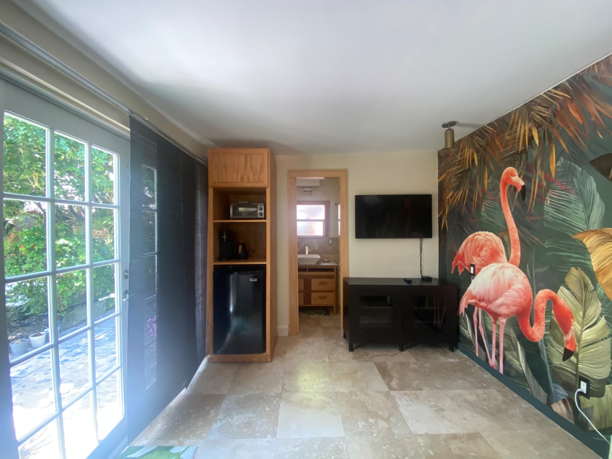 Private and peaceful studio with its own entrance and garden views. Detached from the main house, it offers comfort, quiet, and all essential amenities. Perfect base to explore Miami—just 15 minutes to South Beach, Wynwood, and Downtown. Located in a safe, friendly neighborhood with great local restaurants nearby. A cozy, convenient retreat to relax and recharge.