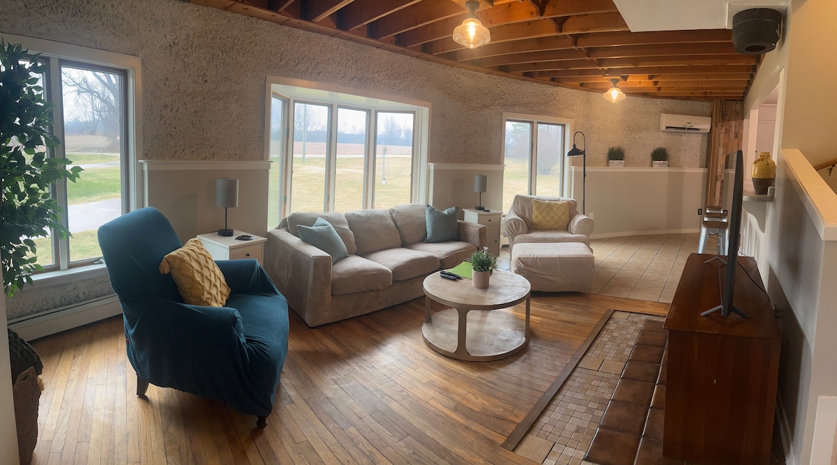 23 hektarlıq ərazisi olan bu Lüks otaq düşünmək və dincəlmək üçün mükəmməldir. Məkana ayrıca yataq otağı/hamam, ikimərtəbəli çarpayıları olan böyük otaq, mətbəx və səhər yeməyi otağı daxildir. Ferma sahələrinin və böyük səmanın şəkil pəncərəsindən zövq alın, köpük topu oynayın, HOVUZ iyun-sentyabr ayları üçün AÇIQDIR, heyvanları ziyarət edin, gölməçənin yanında dincəlin. Ətrafda ilham vermək üçün oturma yerləri və gəzmək üçün perimetr yolu var. Əl ilə alpaka yemləmək bonus təcrübəsi! Uzun avtomobil yolu olan torpaq yolun kənarında yerləşir.