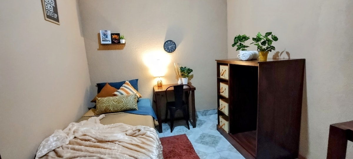 Disfruta de la sencillez de este alojamiento tranquilo y céntrico. A 15 minutos caminando al Jardín Central del pueblo, con un lindo jardín. Tendrás una habitación con baño privado, otra con cama matrimonial y dos colchones individuales y otro baño en el área común, caben 6 personas cómodas, la cocina es muy amplia y está totalmente equipada, tiene Wifi de alta velocidad! Nadie más vive ahí solo un gatito que duerme afuera, pero yo soy vecina y siempre estoy atenta, es un lugar muy tranquilo!