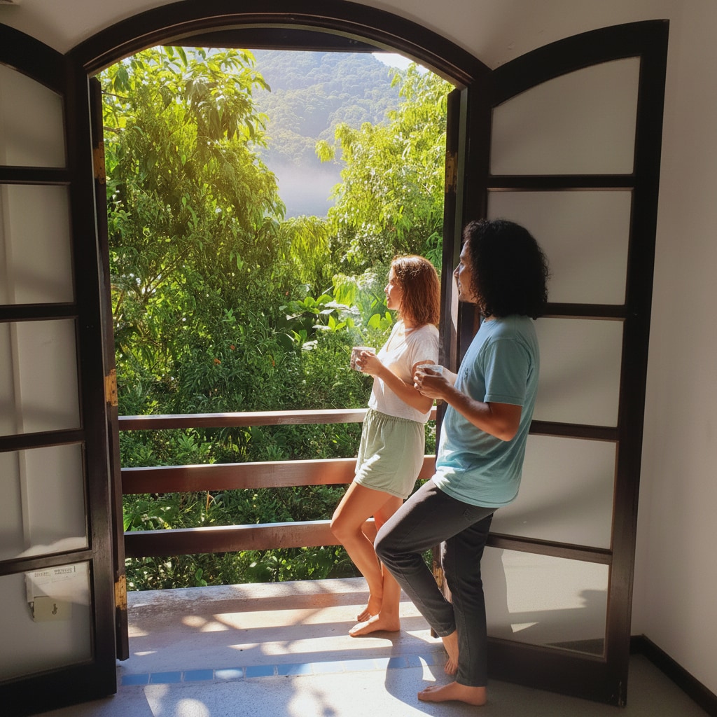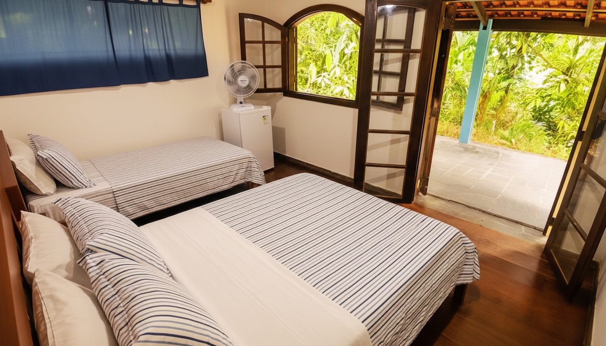 Enjoy this 1st-floor suite with an exclusive balcony and hammock. Located at Casa Mandū, a 5,000 m² green estate just a 5-7 min walk to the beach. Space: 1 double bed + 1 single (up to 3 guests). Amenities: Private bathroom, stable Wi-Fi, and fan. Location: 600m from the beach and 800m from waterfalls. Shared Areas: Access to a full kitchen, TV lounge, and garden.