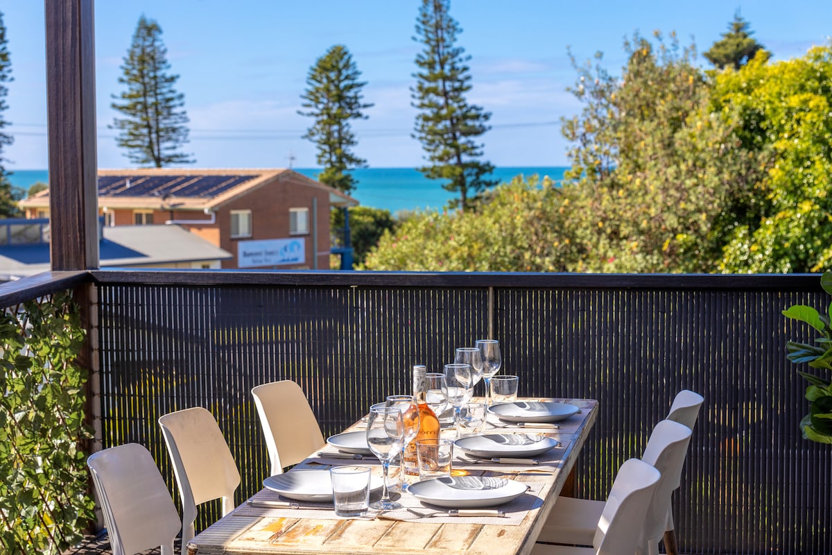 Amazing views of the Pacific Ocean from guest deck through to lounge/ kitchen Direct beach access for surfing,swimming,fishing,bushwalking,cycling trails closeby Relax to the sounds of the ocean from guests downstairs secure and completely private suite with air con ,2 queen bedrooms,kitchen prep area has jug,toaster,3 in 1 microwave airfryer,convection oven,bar fridge etc. Continental breakfast provided . BBQ long stay Large lounge room,bathroom seperate toilet laundry Walk to many Restaurants