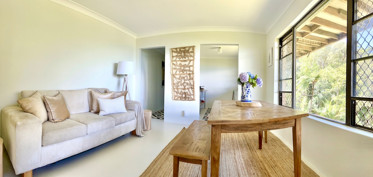 Escape to High on Hill, nestled in 4 acres of lush, protected rainforest. Breathtaking views, exotic birdlife and tranquil greenery set the scene. Walk to cafes, beach, and shops while revelling in your secluded oasis. Offering open-plan living, a kitchenette, separate bathroom, a generously sized bedroom & laundry. Each room offers stunning water and bushland vistas. Unparalleled views, prime location, and lush surroundings make this your ideal retreat for your Nambucca Heads getaway.